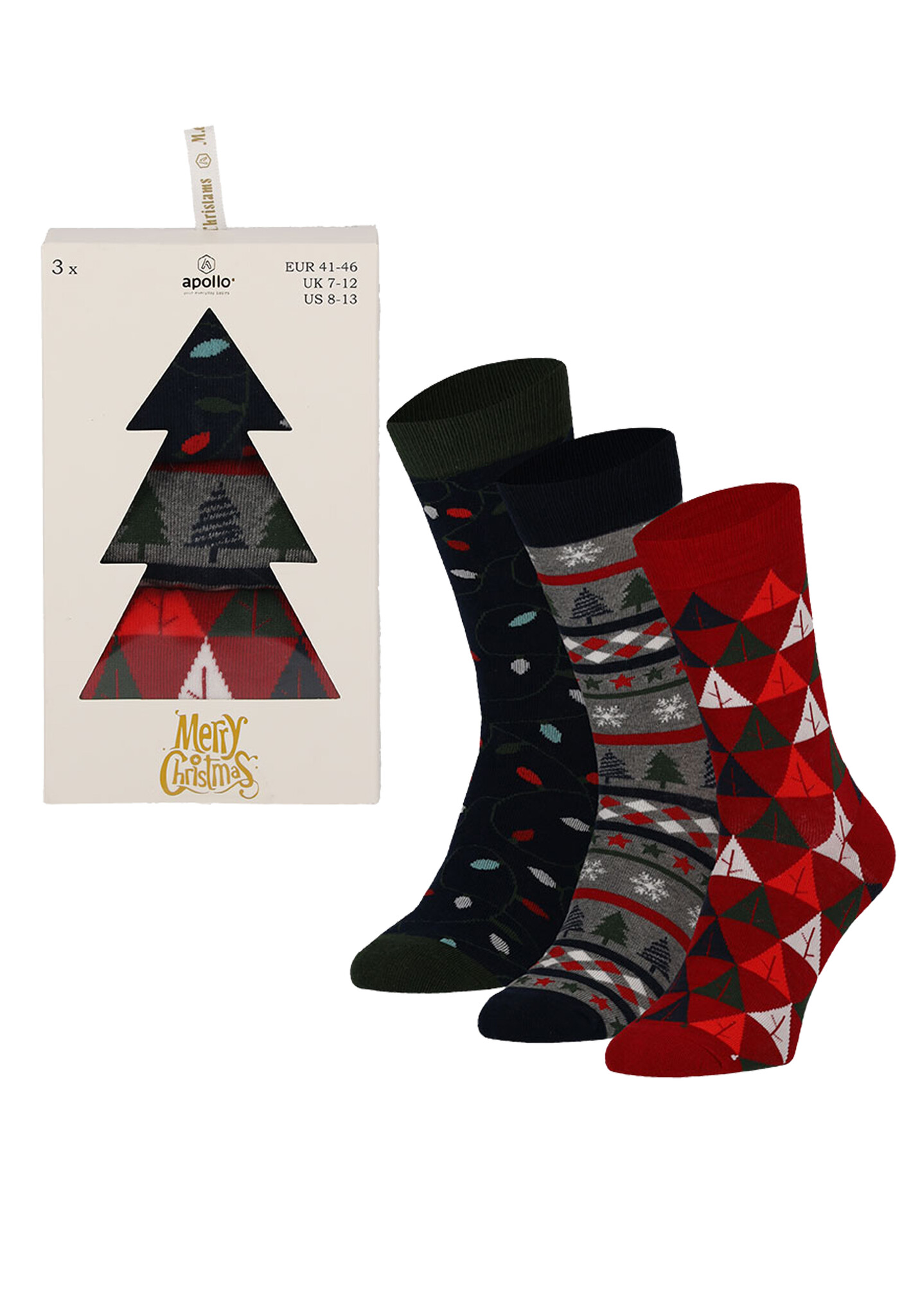Apollo Men's Christmas Socks Giftbox 3-Pack Print