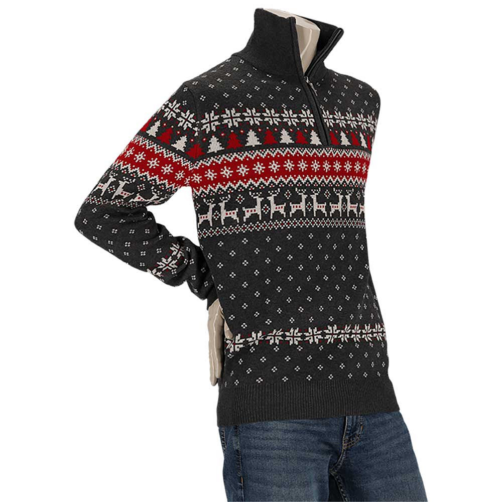 Apollo Men's Christmas Sweater Zip With Christmas Print Gray