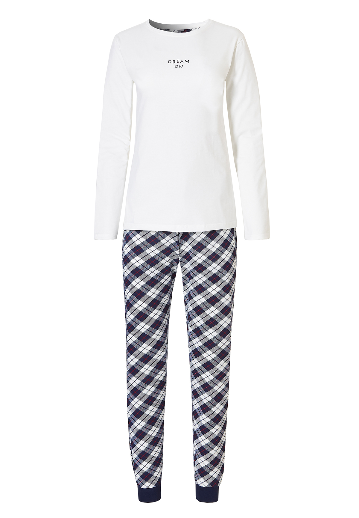 By Louise Essential Ladies Pajama Set Long Cotton Checkered White Dream On