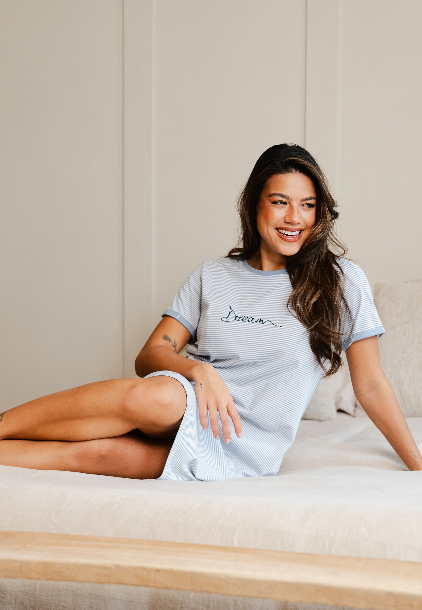 Big shirt model with short sleeves: ideal for lounging and sleeping