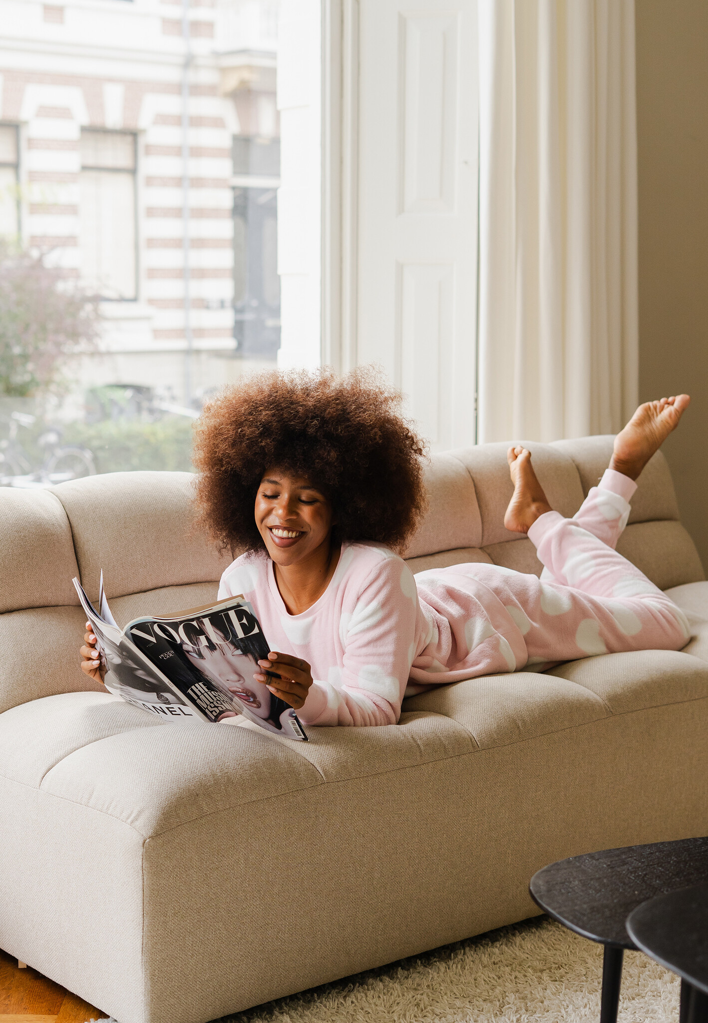 The home suit from By Louise is made of 100% polyester fleece: extra soft, light and cozy.