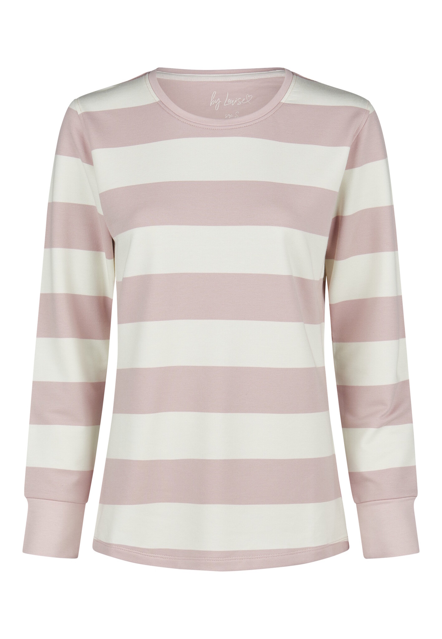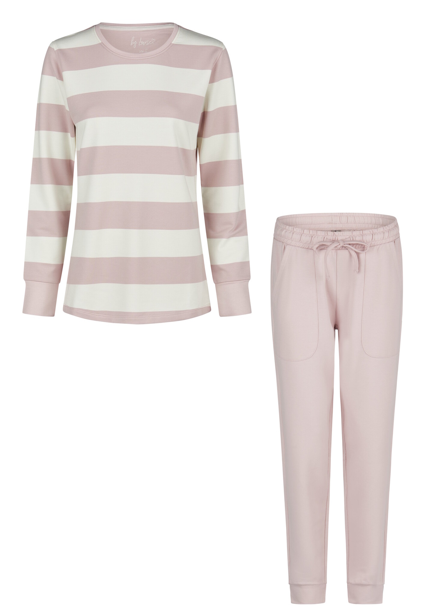 By Louise Ladies Lounge Pajama Set Long Sweat Fabric Pink/White Striped
