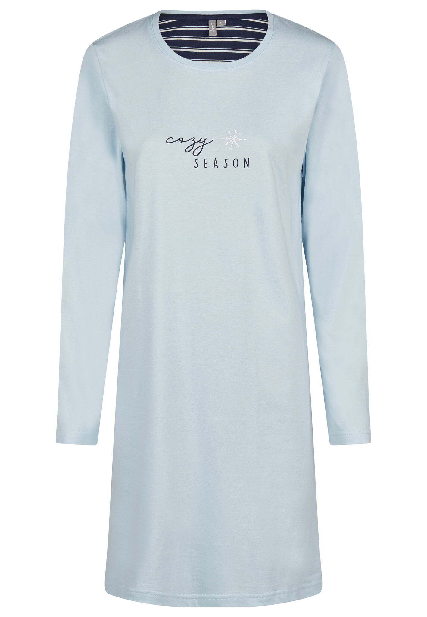 By Louise Ladies Nightshirt Long Sleeve Cotton Solid Light Blue