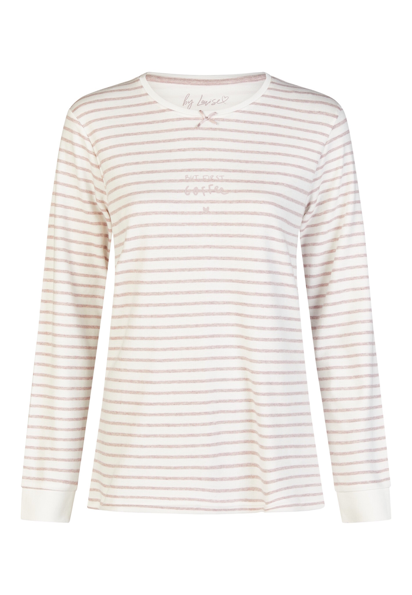 By Louise By Louise Ladies Pyjama Set Long Interlock White/Pink Striped