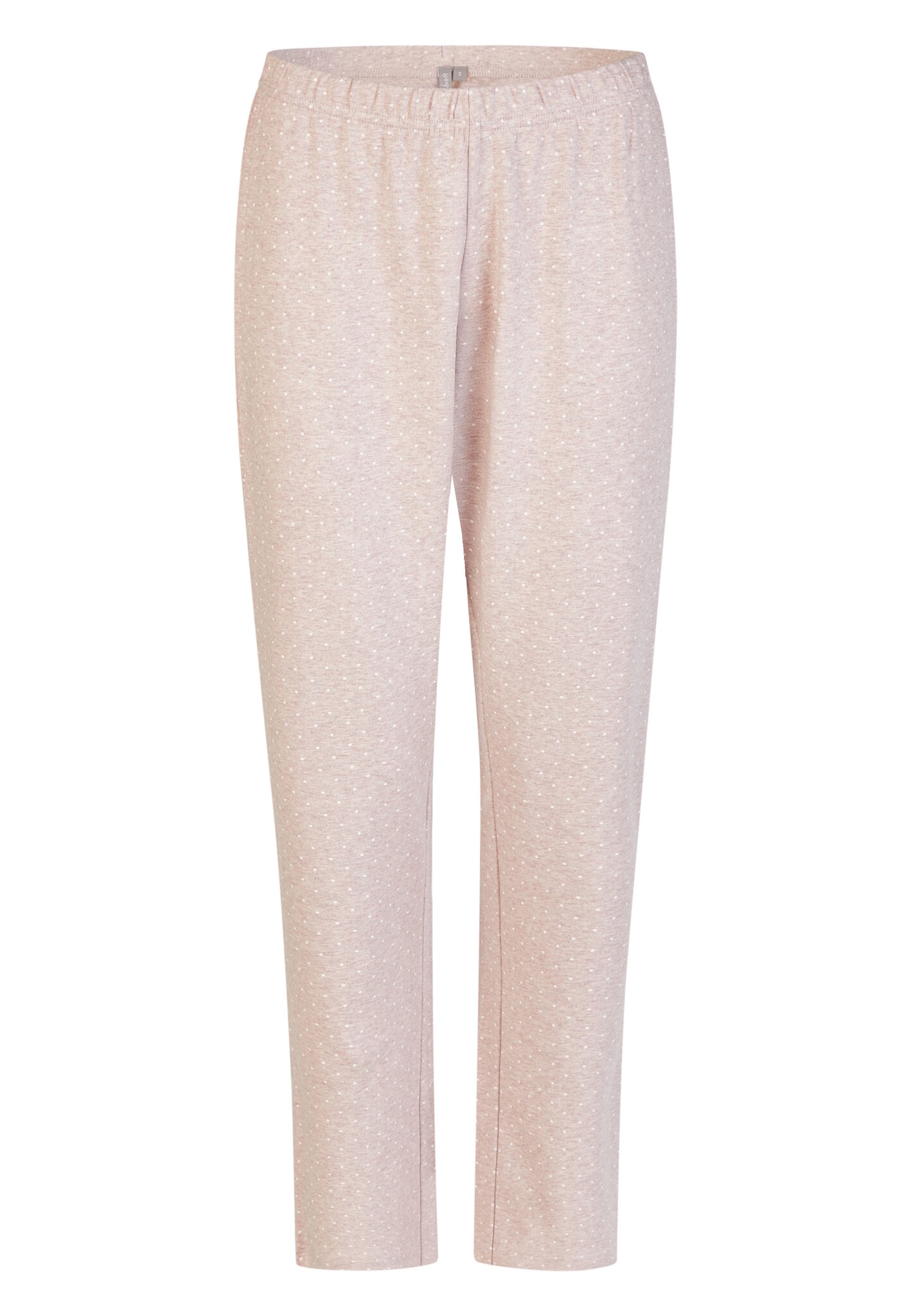 This soft women's pajama set in white with pink stripes is made of warm interlock quality and feels wonderfully comfortable during cooler evenings. The striped shirt and plain pink pants combine to create a fresh, calm look that is perfect for relaxing moments at home.
