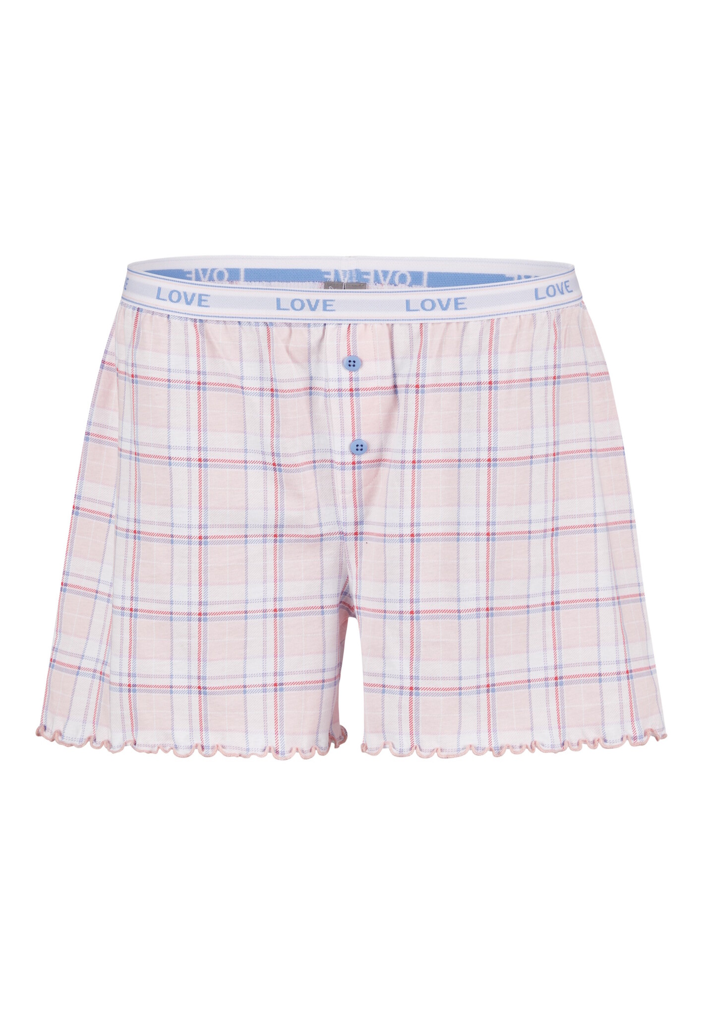 Short pajama bottoms with classic pink plaid pattern