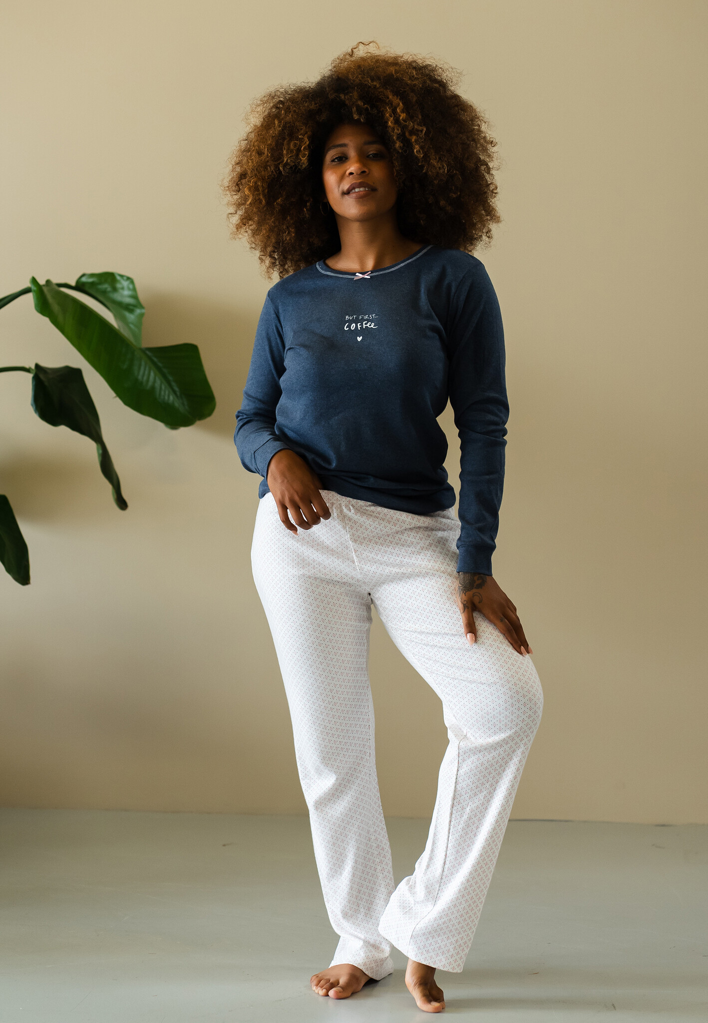 The By Louise women's pajama set is perfect for a cozy evening lounging on the couch. This winter pajama set includes long pajama pants and a long-sleeved shirt, made from a warm cotton blend. The set is completed with soft terry house socks, ideal for keeping your feet nice and warm.
