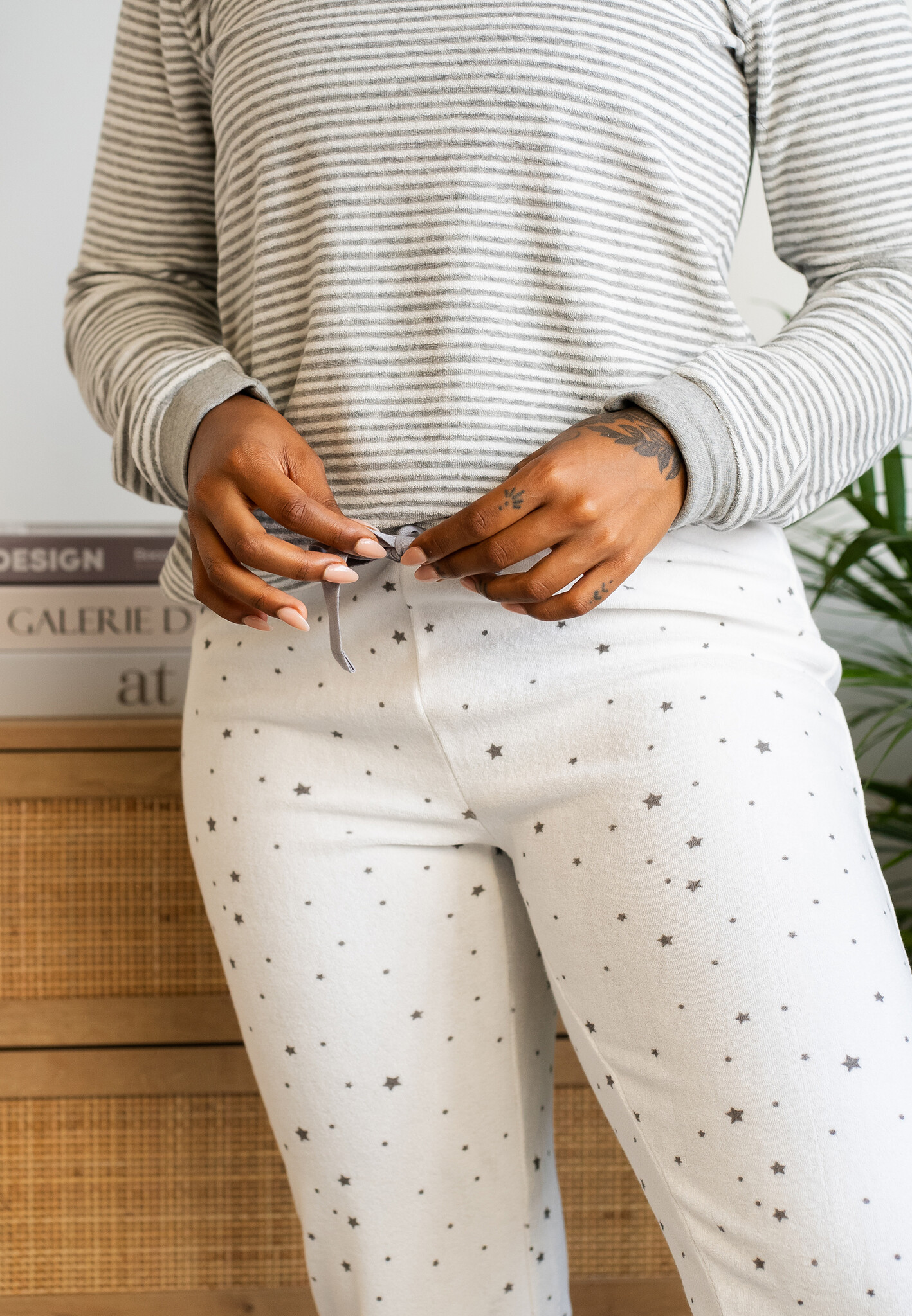 By Louise Ladies Winter Pajama Set Long Terry Striped White