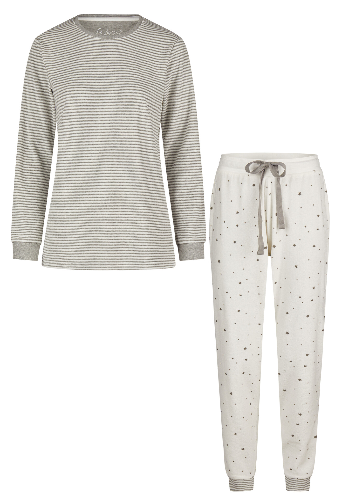 The By Louise women's pajama set offers ultimate comfort for cold nights thanks to its warm cotton-polyester blend. The soft terry material is not only stretchy but also moisture absorbent, keeping you wonderfully dry and warm. These stylish pajamas feature a round neck and a long-sleeved shirt for extra warmth.
