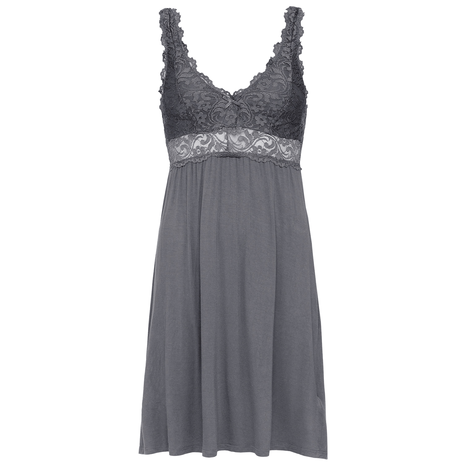 By Louise Slipdress Ladies Nightshirt With Lace Dark Grey