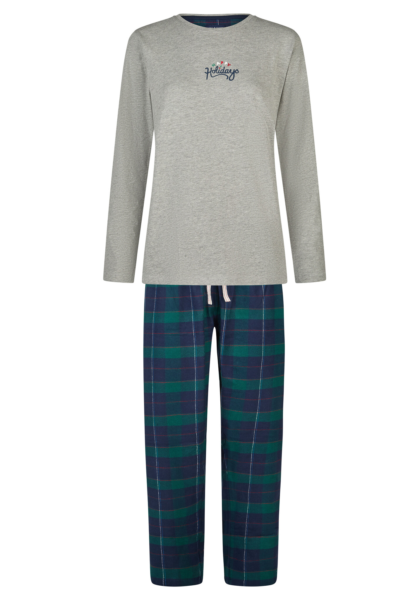 Happy Shorts Ladies Christmas Pajama Set Shirt + Pants Giftbox Grey/Green Checkered Flannel
