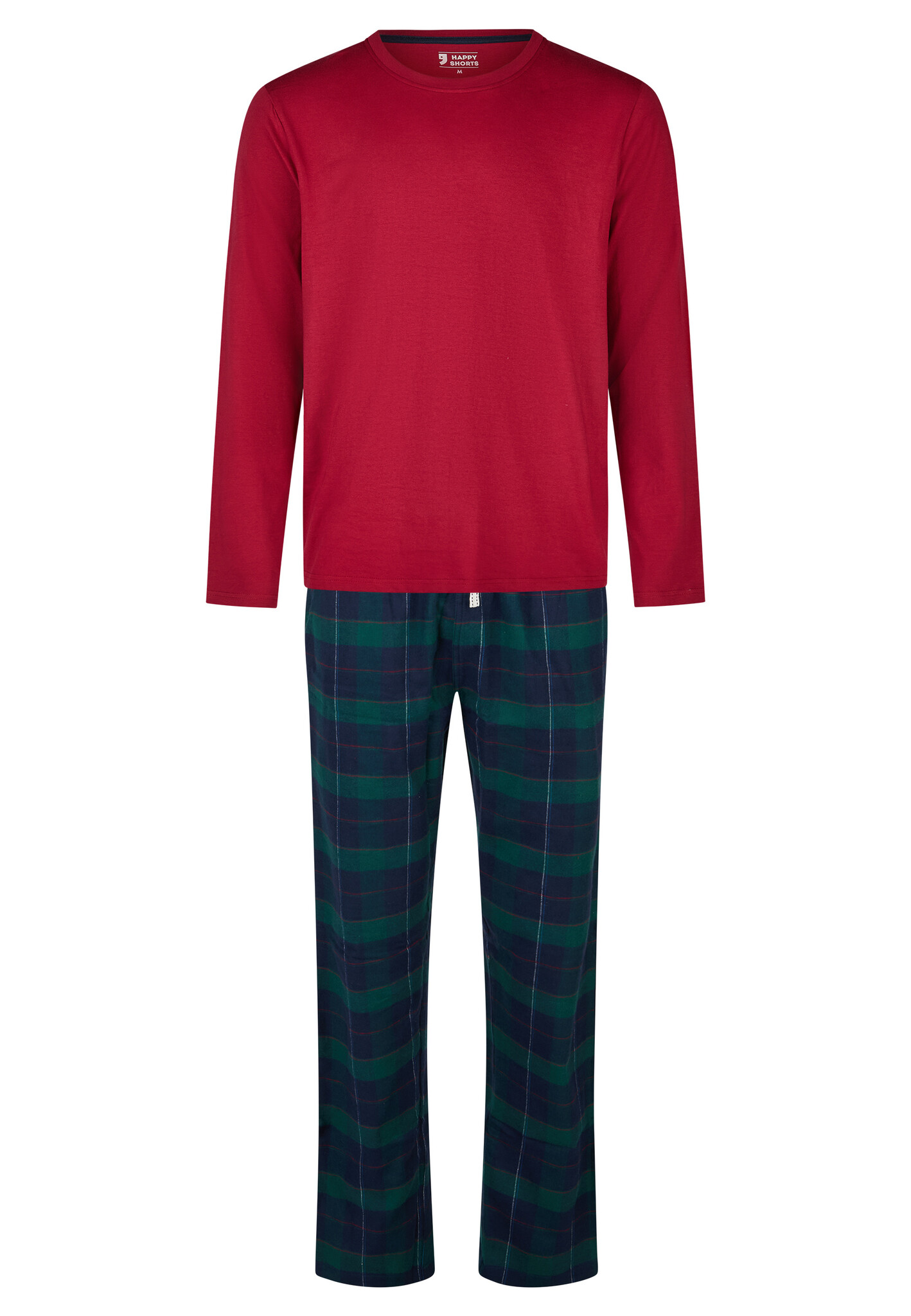 Happy Shorts Men's Christmas Pajama Set Shirt + Pants Giftbox Red/Green Checkered Flannel