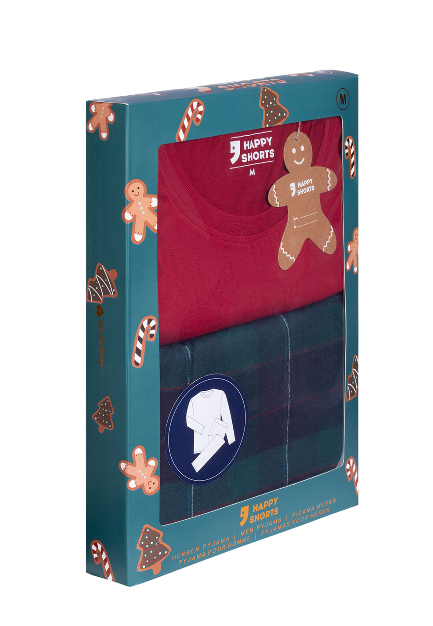 The Happy Shorts men's pajama set in festive Christmas packaging combines style and comfort, perfect for the cold days and ideal as a gift. The set includes a long-sleeved T-shirt with a round neckline, along with comfortable, long pajama pants.