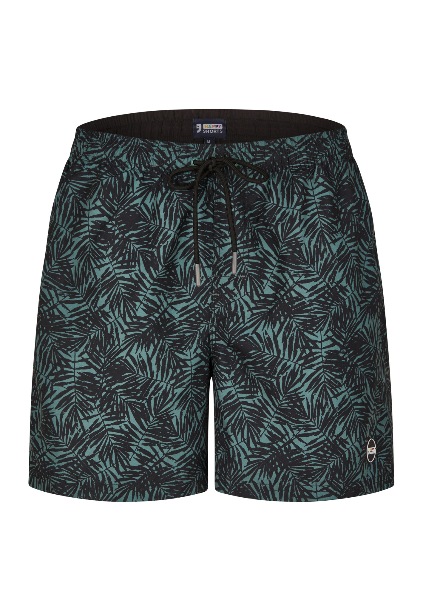 Happy Shorts Men's Swim Short Palm Leaves Black/Jungle Green Print