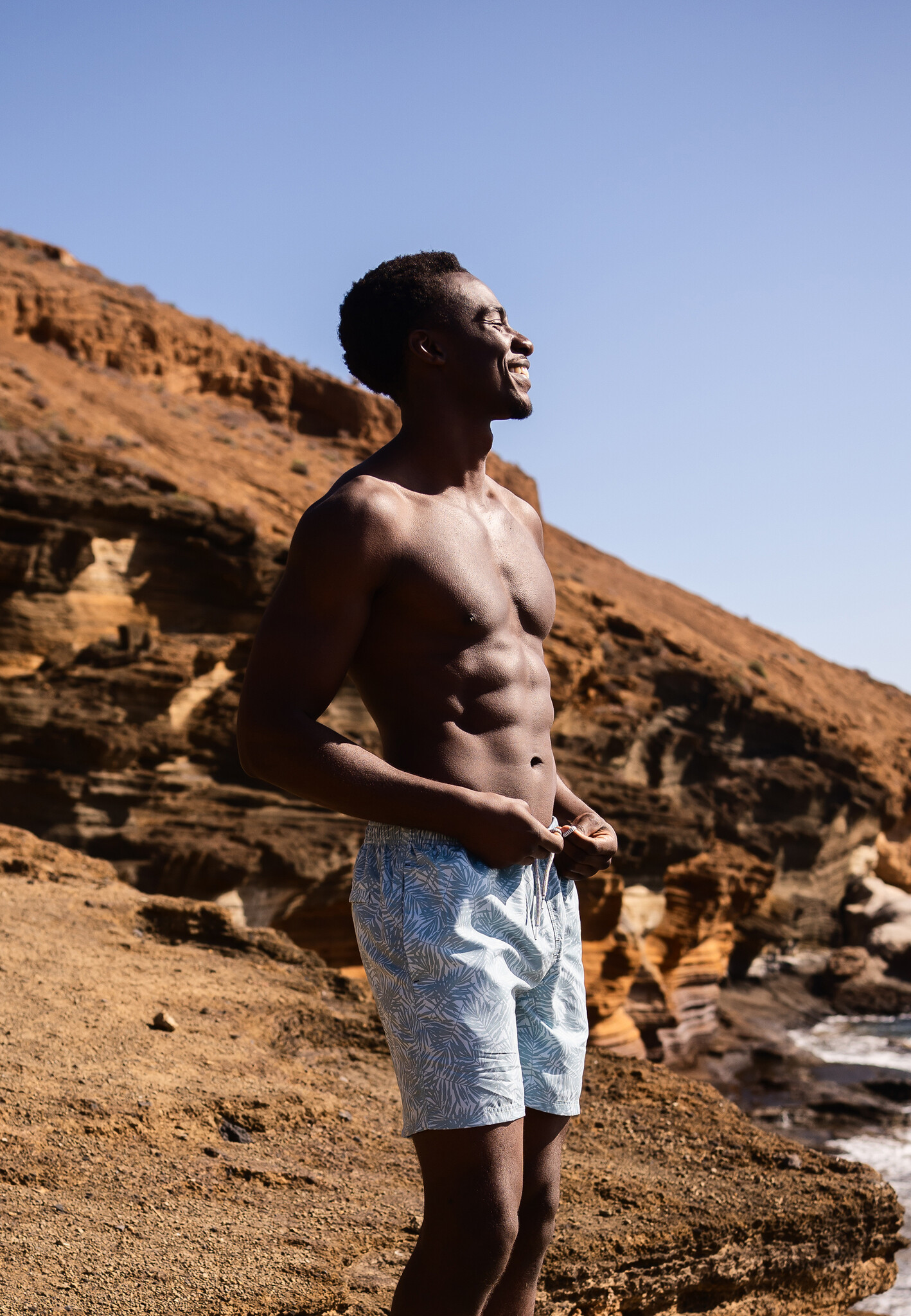 Happy Shorts Men's Swim Short Palm Leaves Blue Gray Print