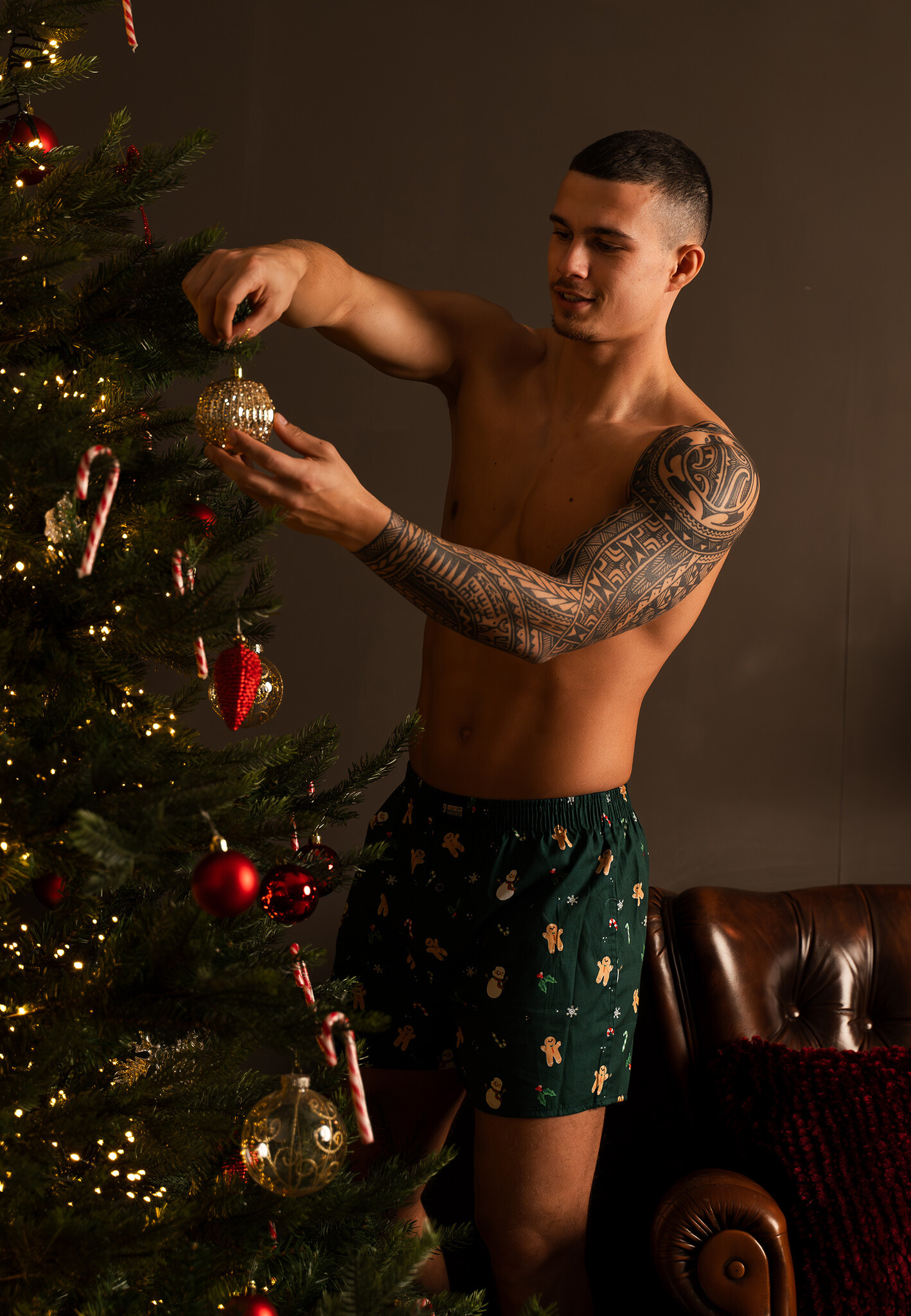 Happy Shorts Wide Christmas Boxer Shorts Men's Snowman + Gingerbread Green