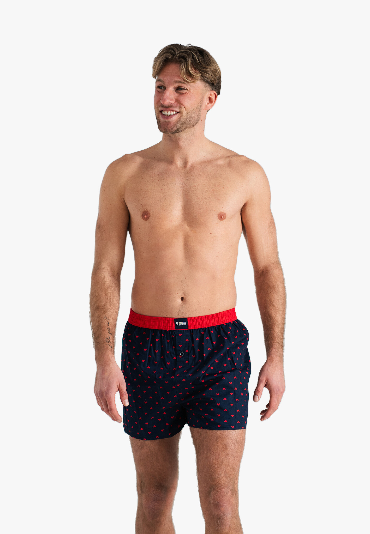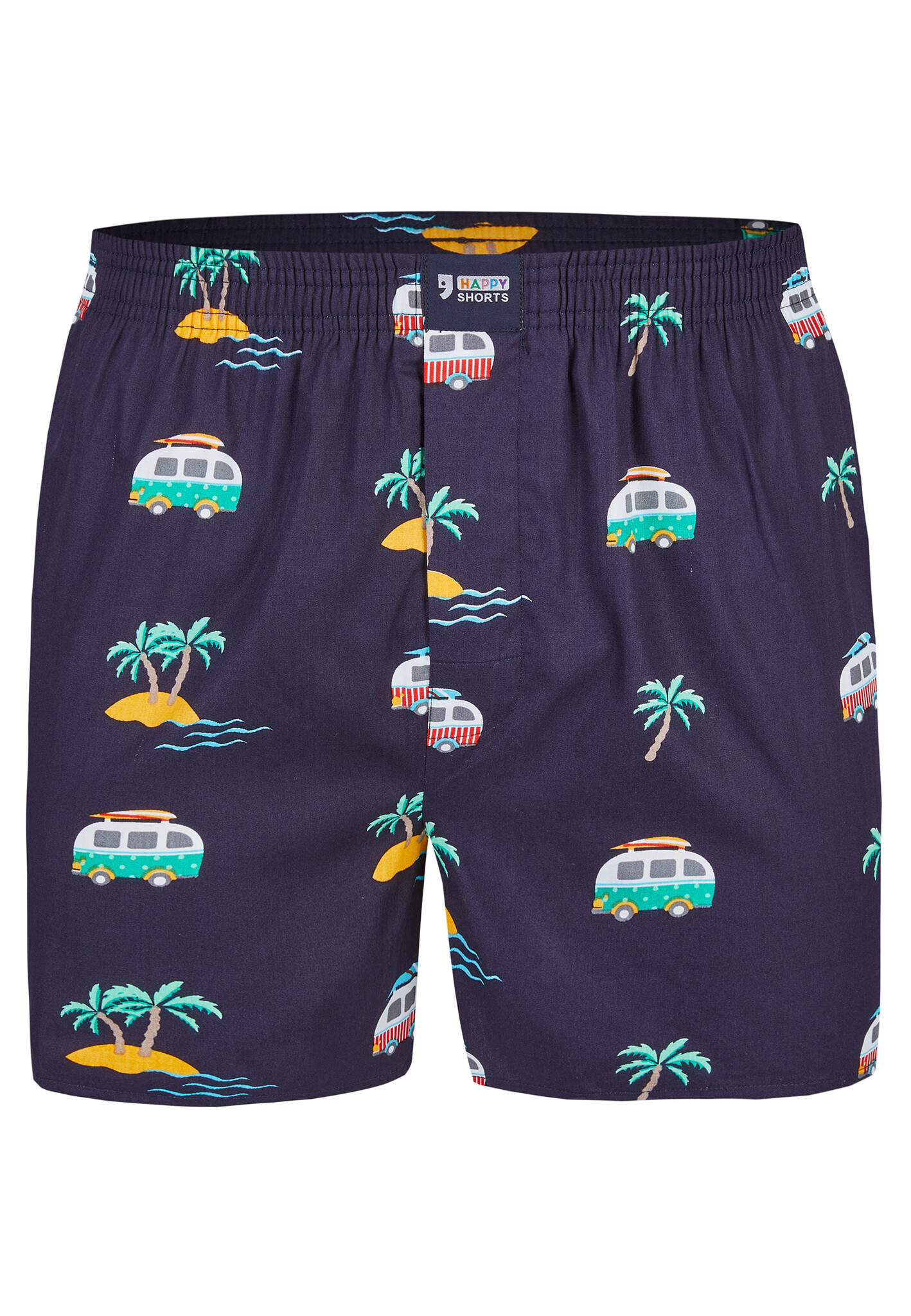 • Happy Shorts logo on front waistband