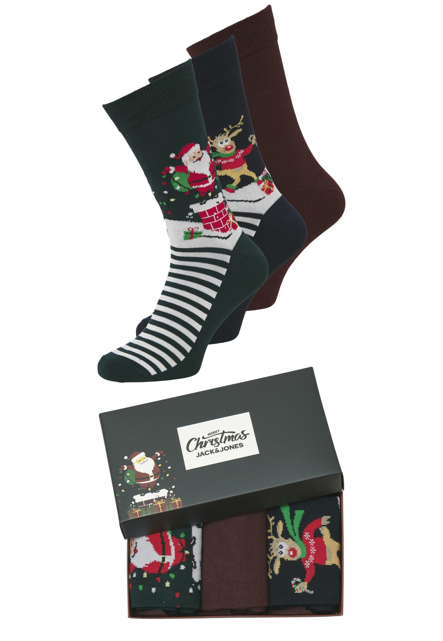 The Jack & Jones Junior boys 3-pack JACSNOWY Christmas socks gift box brings extra warmth and coziness to the holidays. The set includes three pairs of soft Christmas socks with cheerful prints, specially designed for young Christmas fans. Perfect to wear during the cold winter days or to give as gifts during the holiday season.