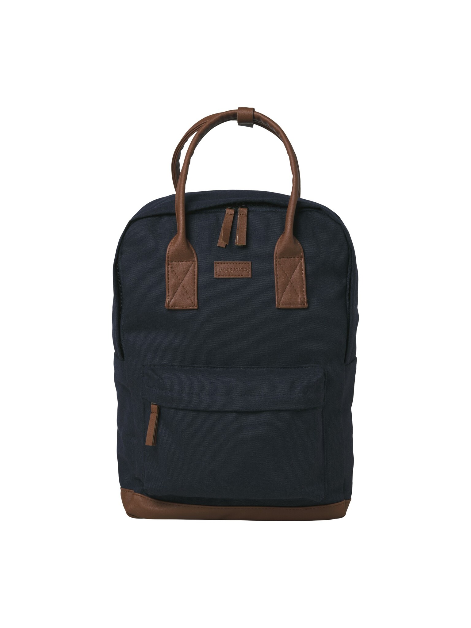 The Jack & Jones men's backpack JACPASCAL in dark blue with a brown handle is a practical and stylish companion for everyday use. Thanks to the sturdy canvas made of recycled material, this backpack is not only durable, but also lightweight and easy to maintain - perfect for leisure, work or school.