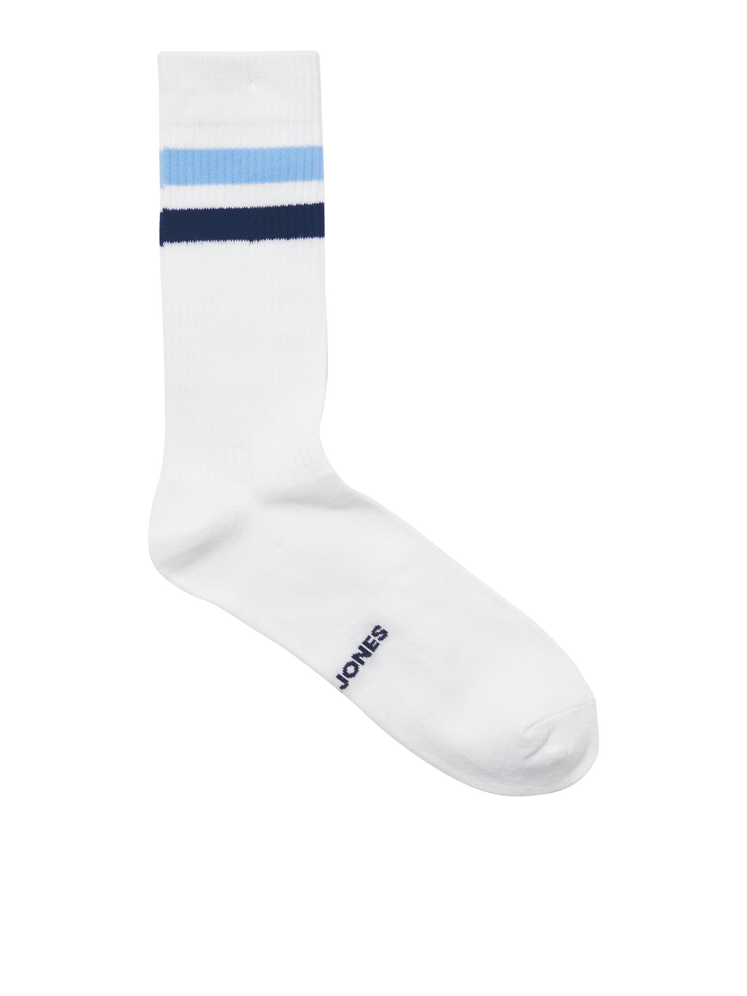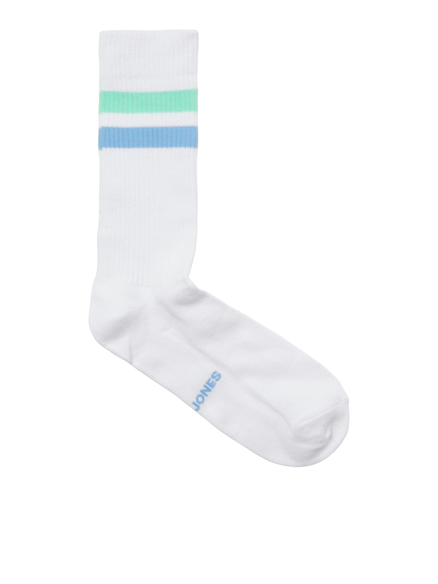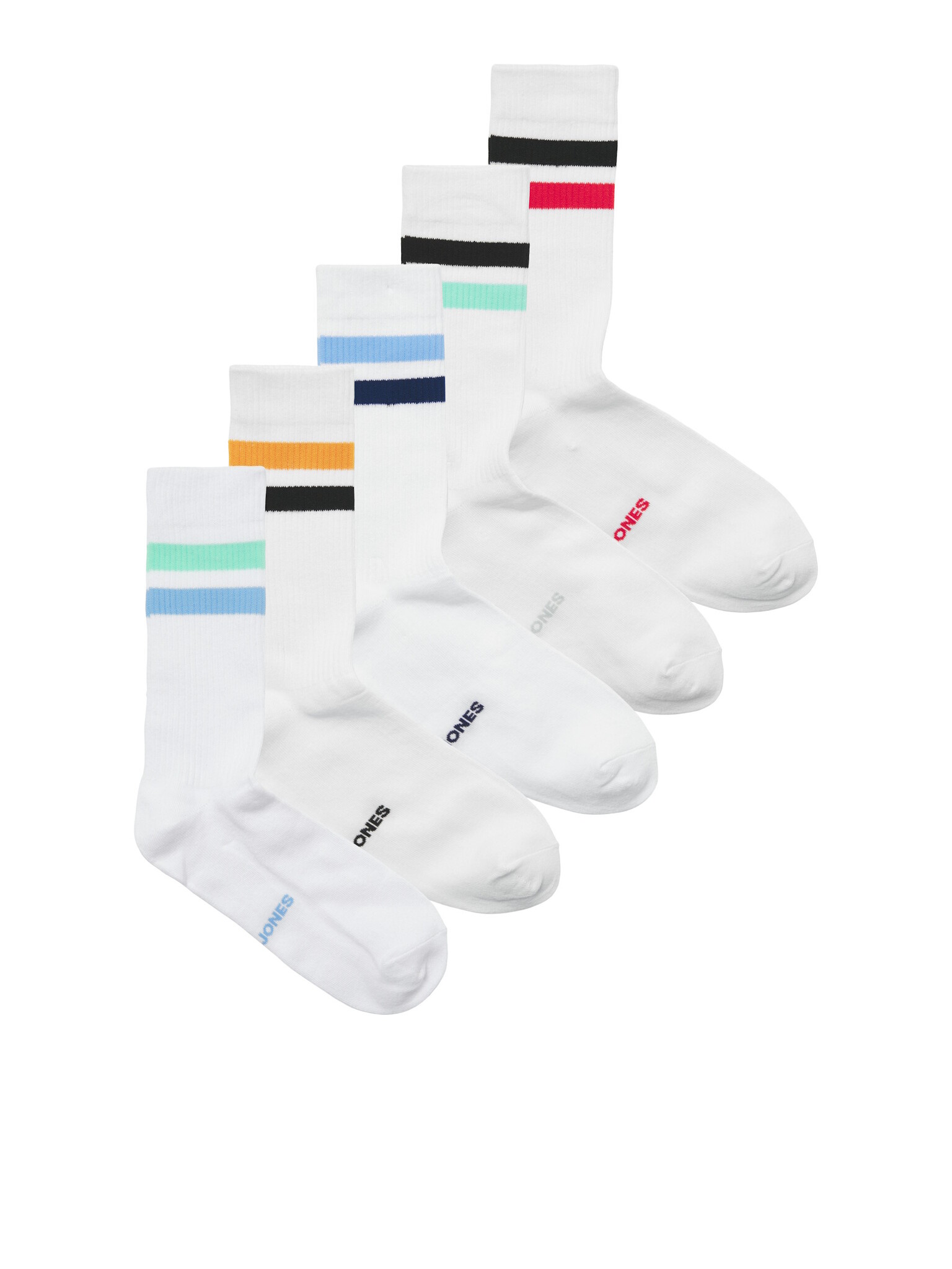 Design: White socks with colored stripes and subtle Jack & Jones logo under the foot.