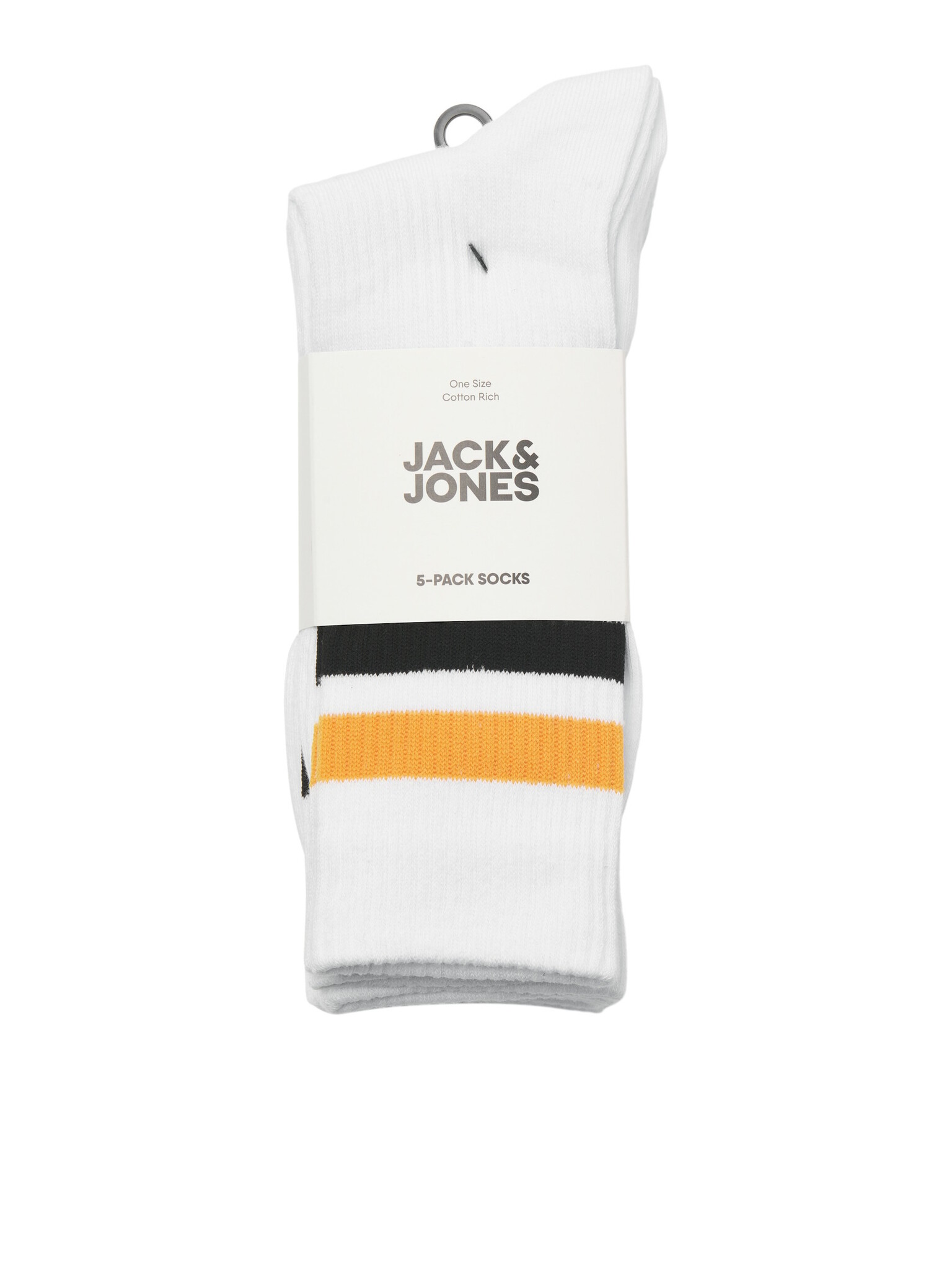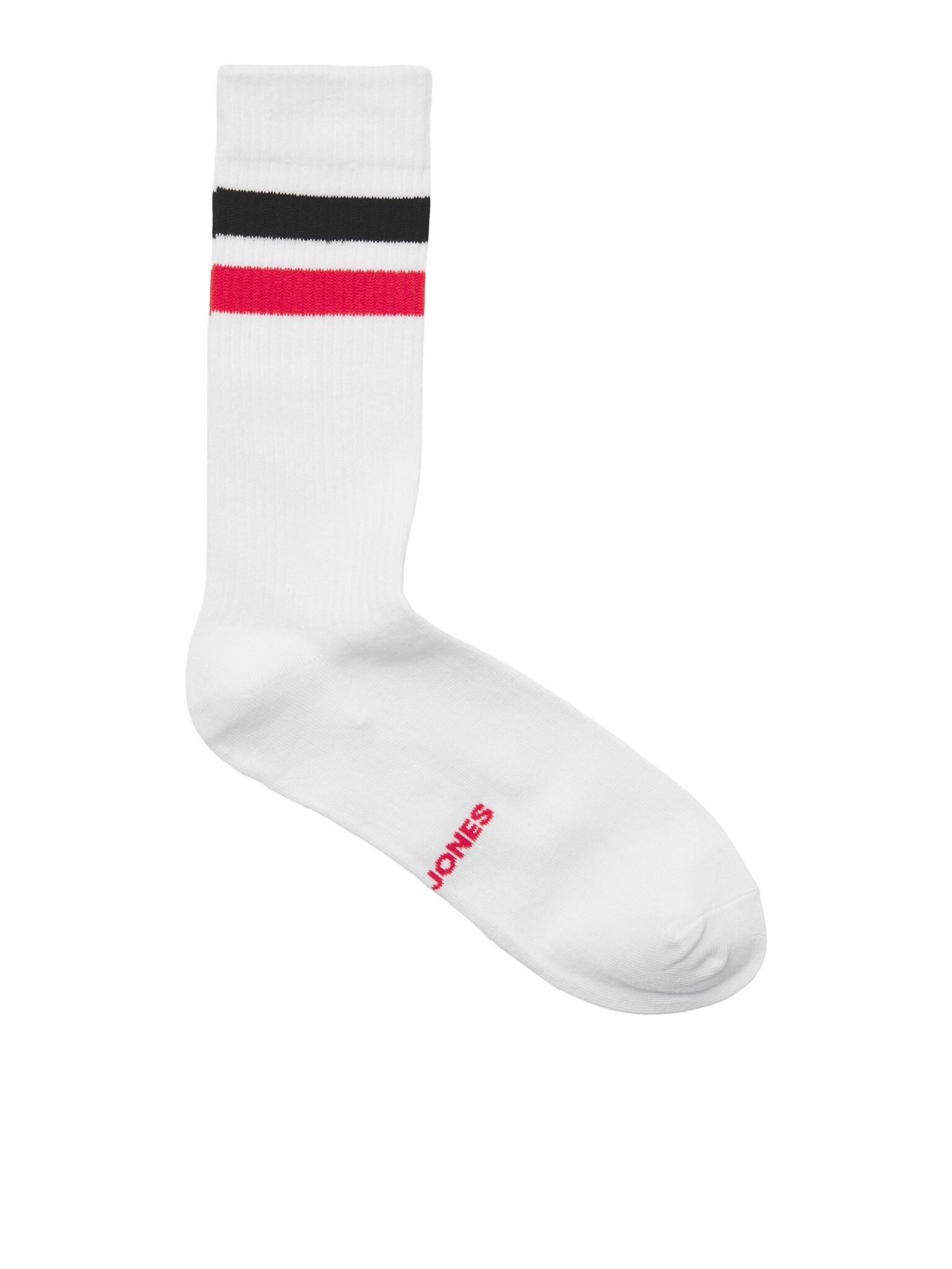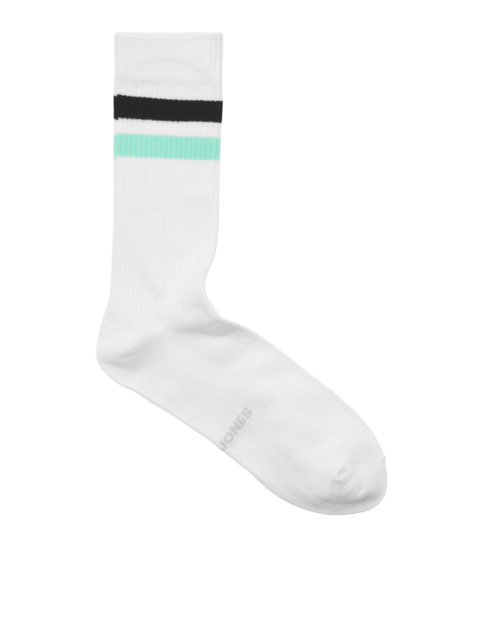 Design: White socks with colored stripes and subtle Jack & Jones logo under the foot.