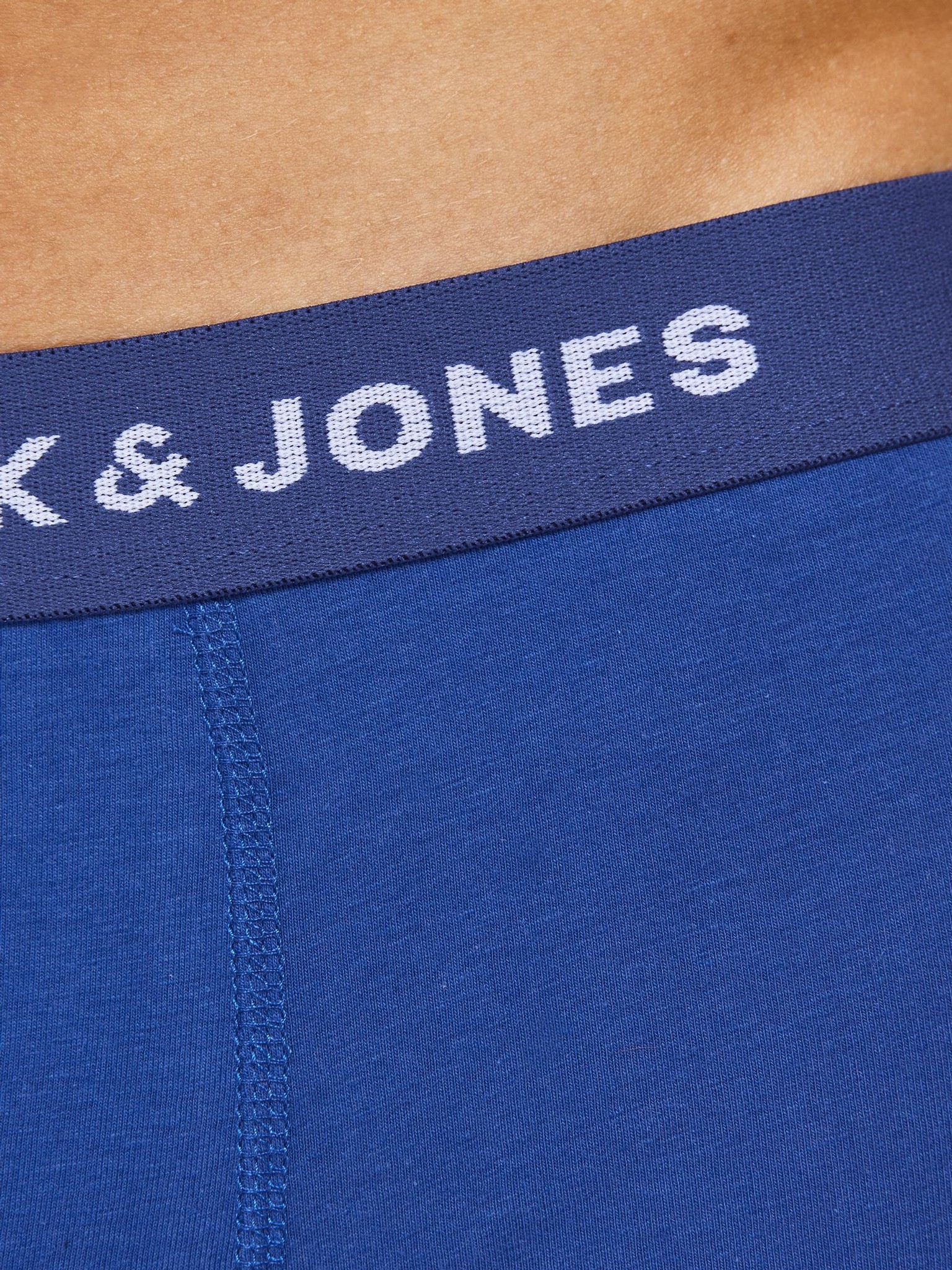 Jack and Jones junior kids boxer shorts multipack for boys. The set of basic underpants contains 5 boxer shorts in the colors blue, grey, red, navy, black.