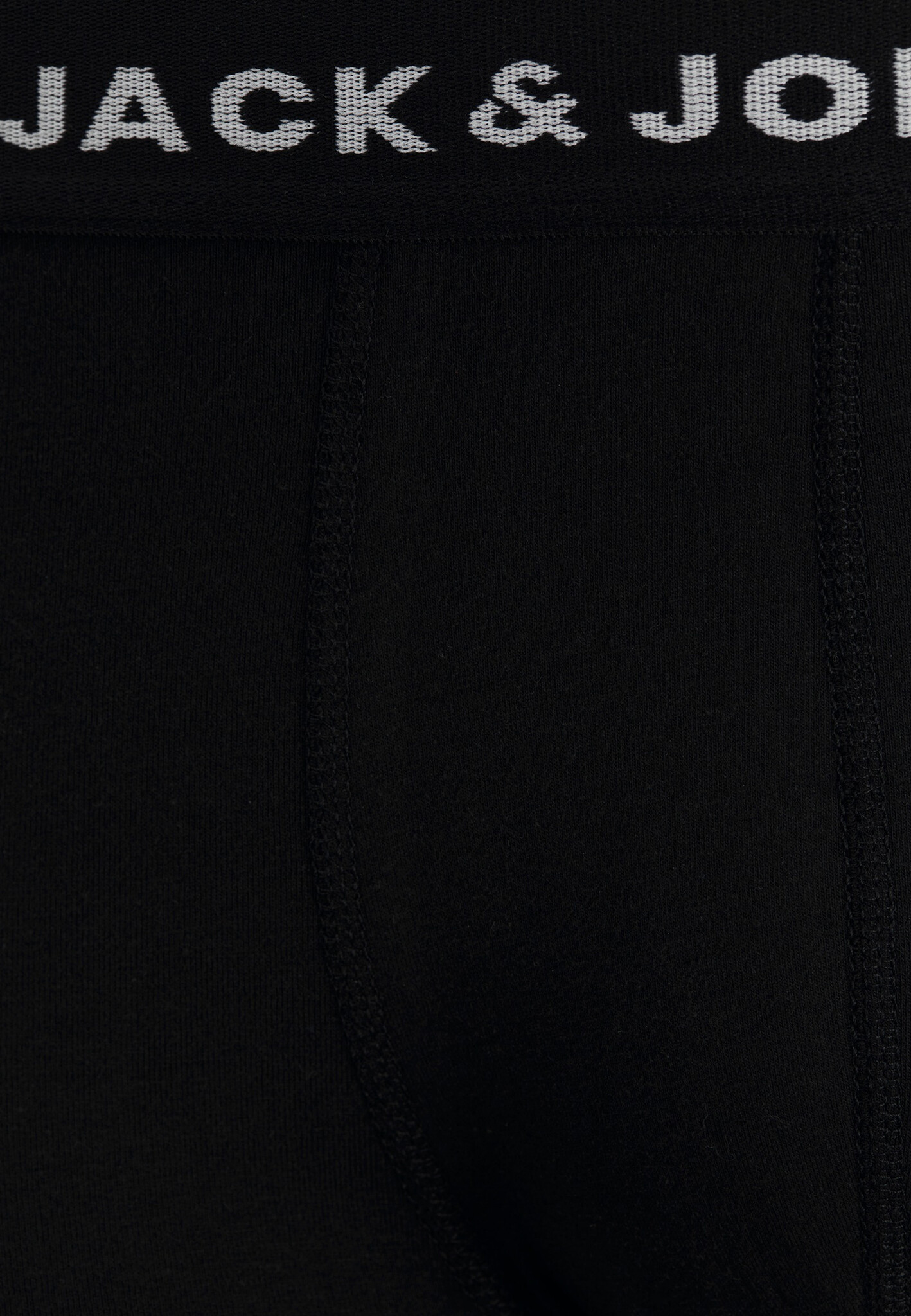 Pack of 5 Jack and Jones solid black boxer shorts in plus sizes. The JACHUEY boxer shorts multipack contains 5 solid colors with short legs and elastic waistband.