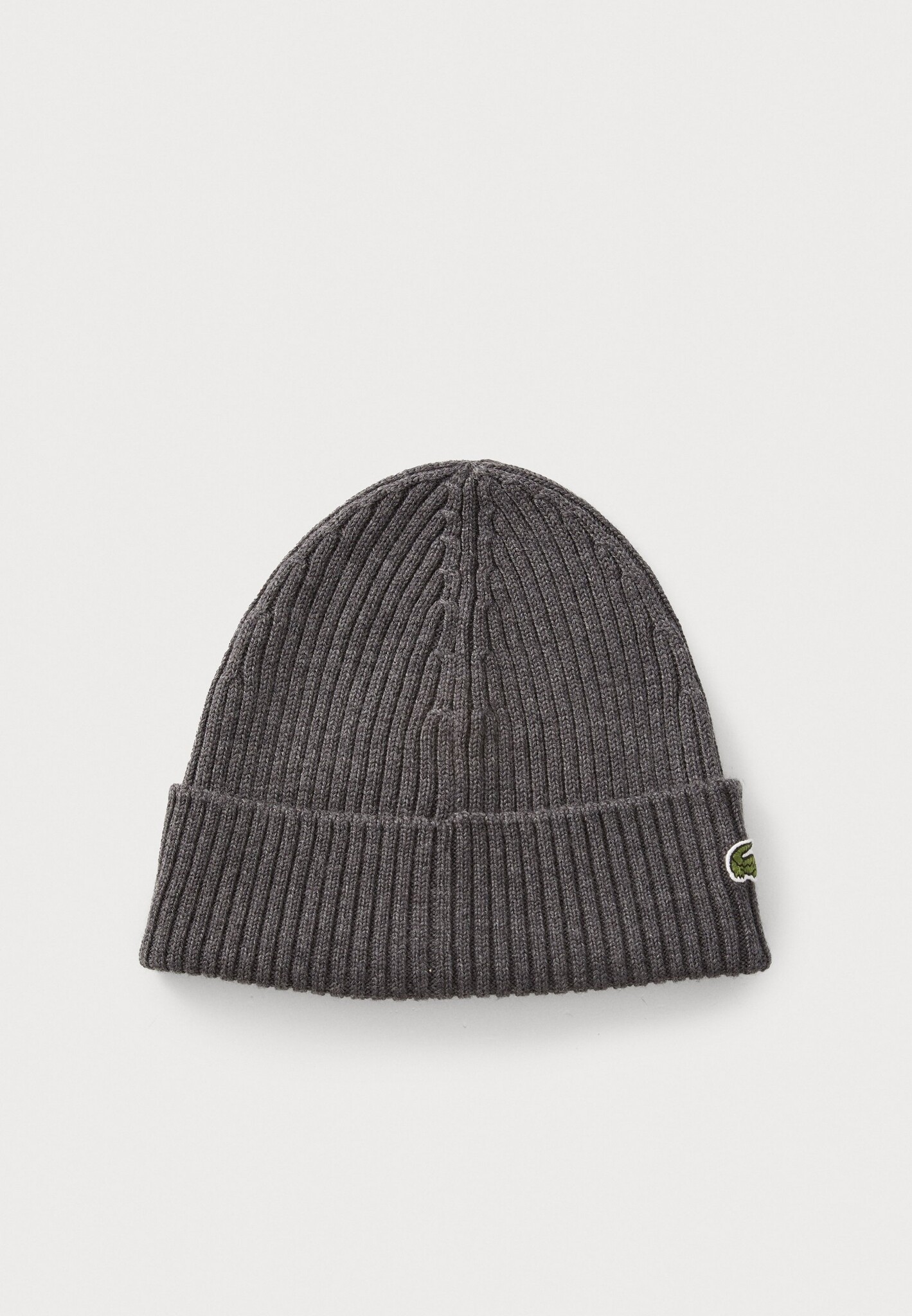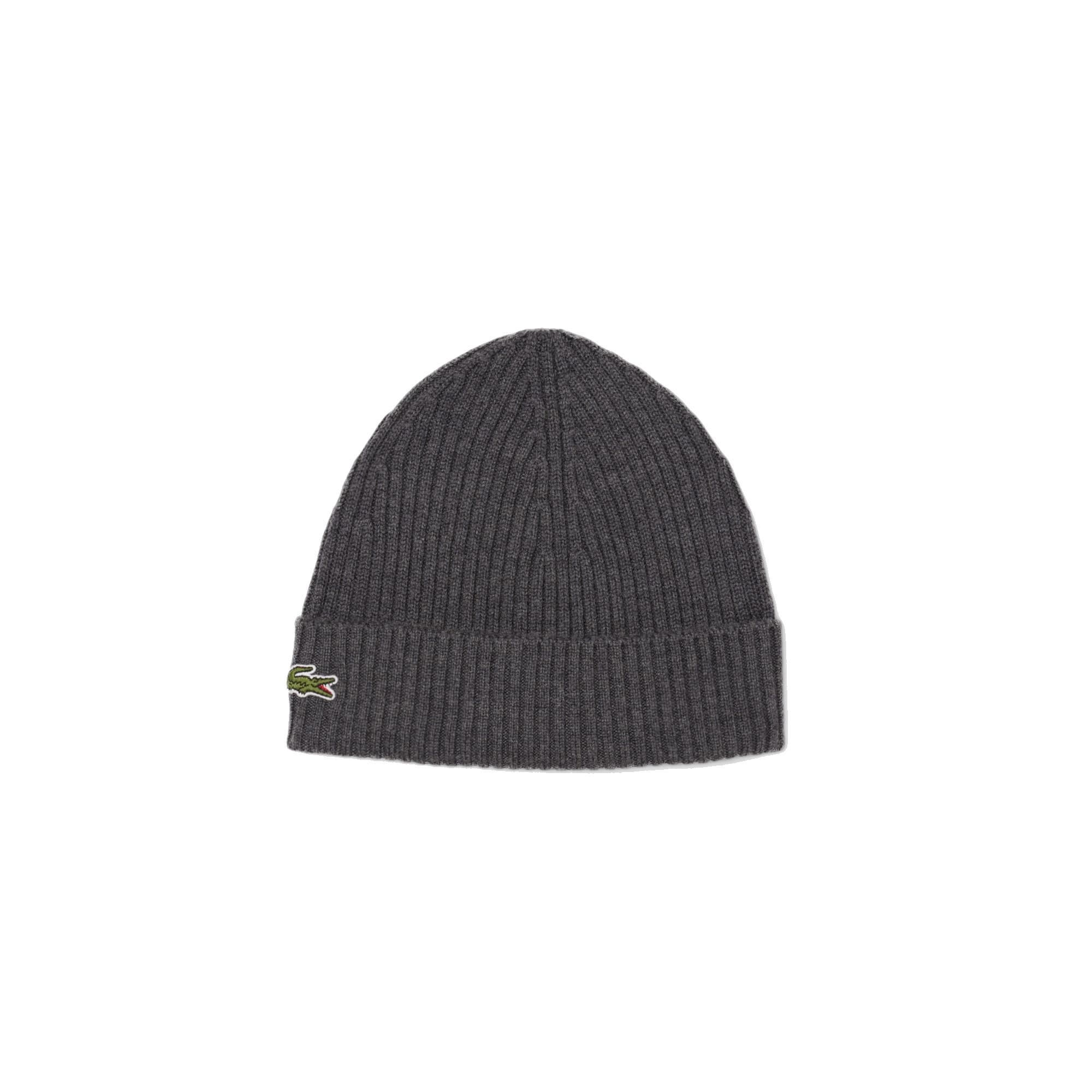 Lacoste Beanie Ribbed Ladies Men's Hat Wool Gray