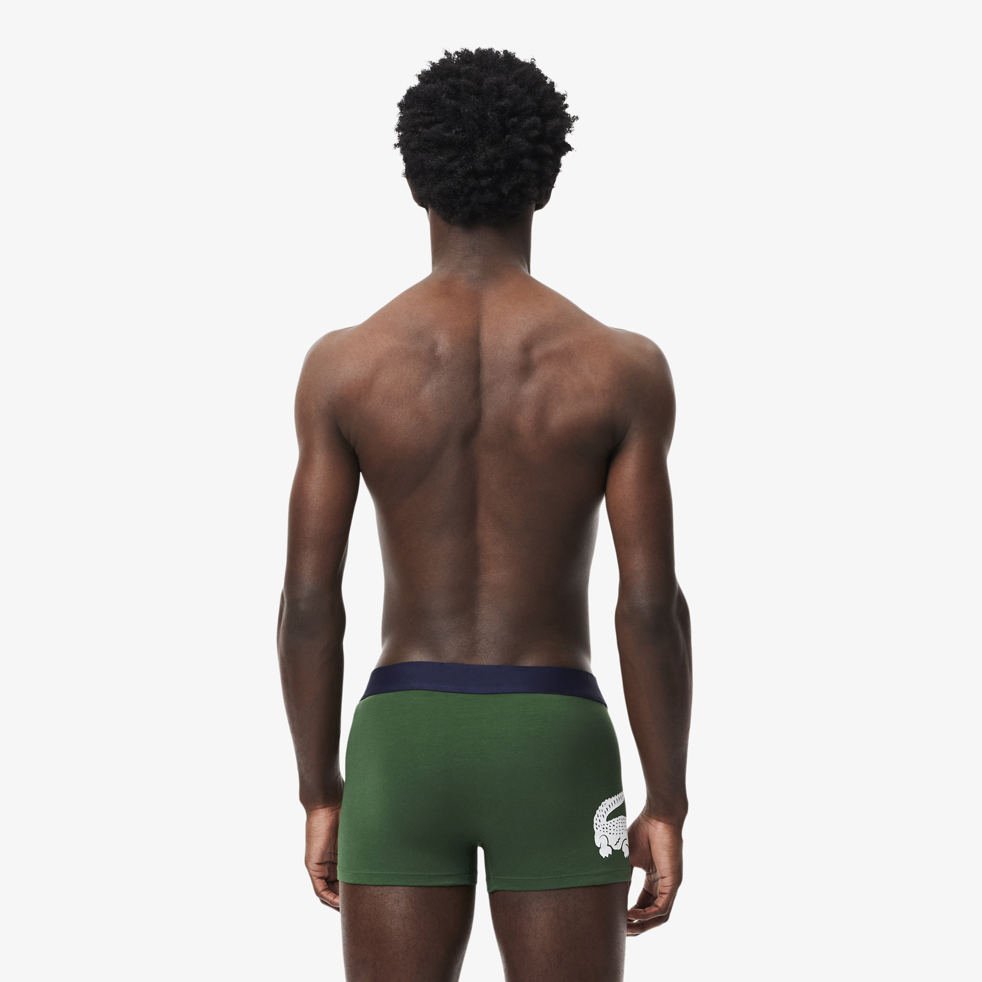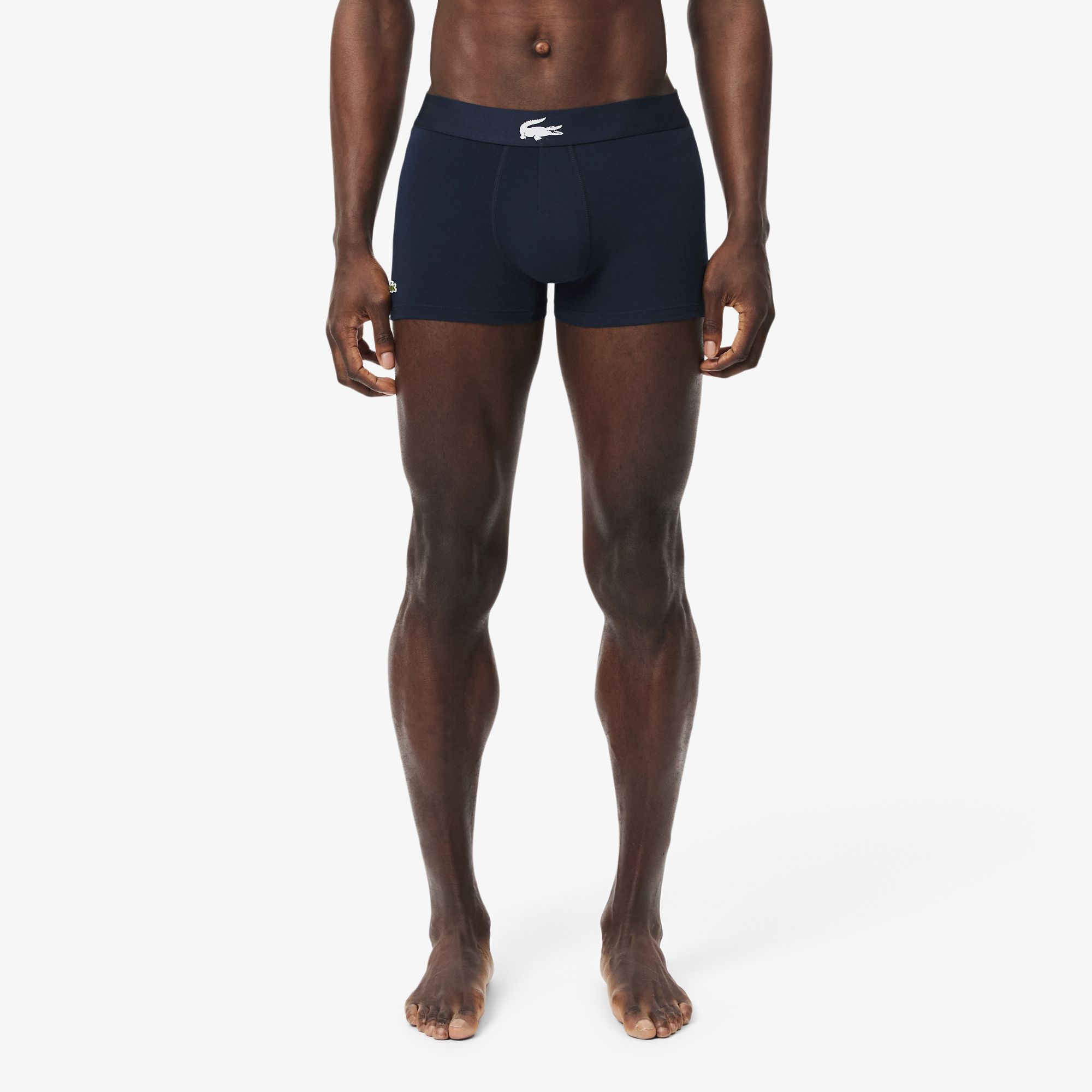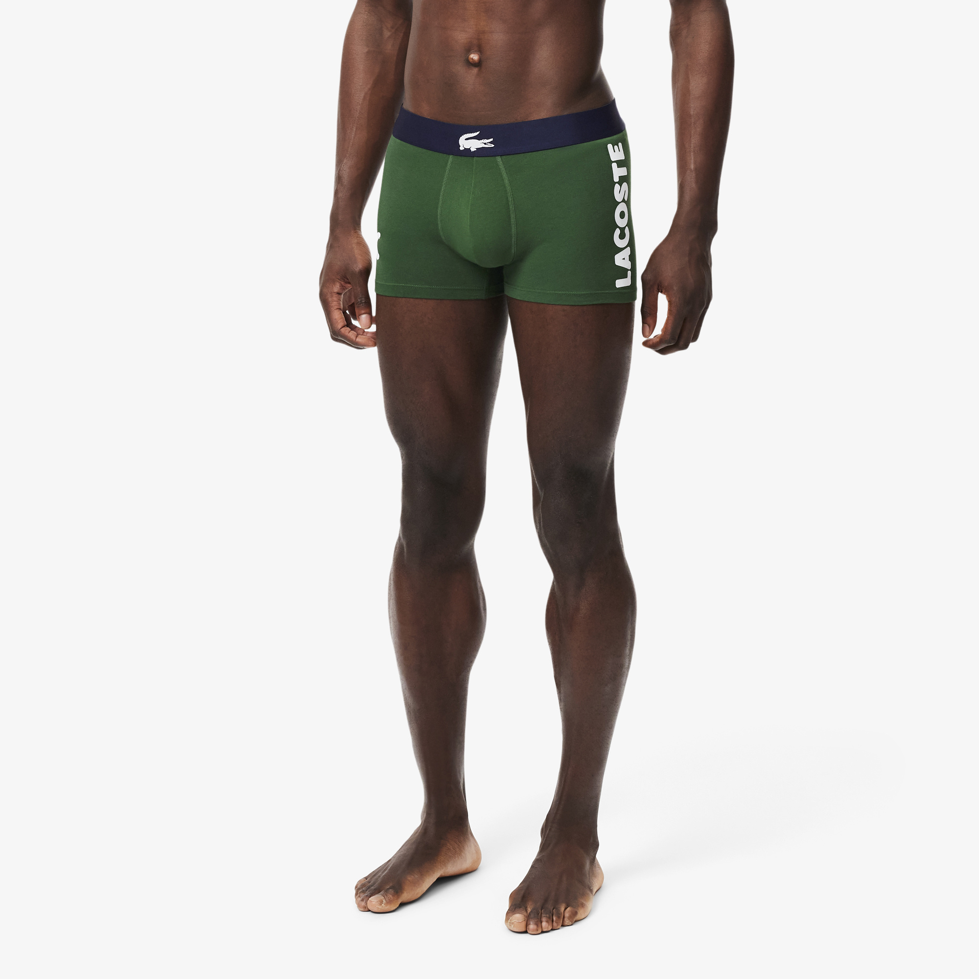 Lacoste's boxer shorts combine modern design with the brand's recognizable sporty character. This 3-pack in green, dark blue and white is made from soft stretch jersey of cotton and elastane. The trunks offer a tight fit that ensures support and comfort from morning to evening.