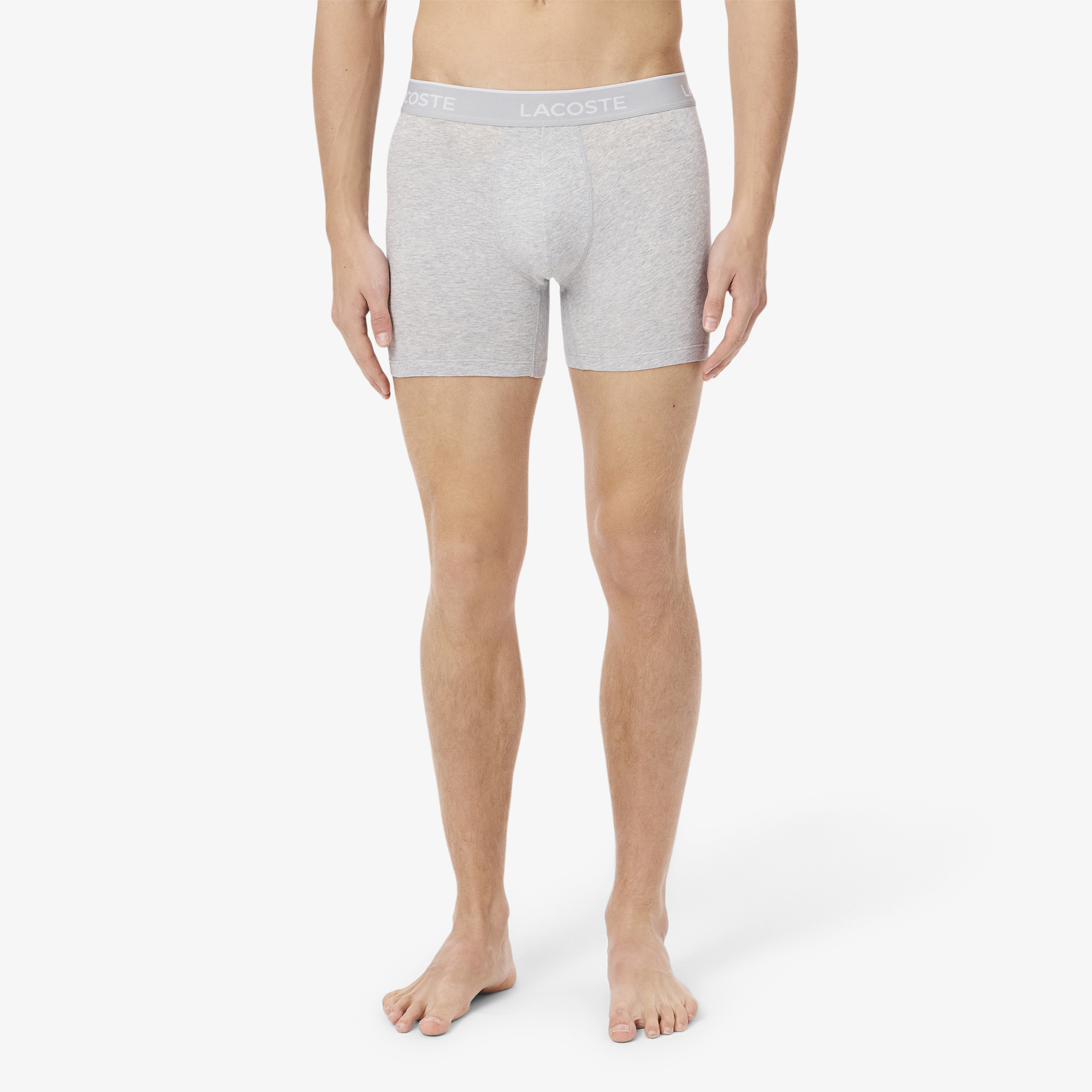 Lacoste's long leg boxer shorts combine sporty style with timeless comfort. This 3-pack in white, gray and black offers a modern foundation for every day wear. The stretch cotton and elastane jersey fits smoothly and offers support and freedom of movement all day long.