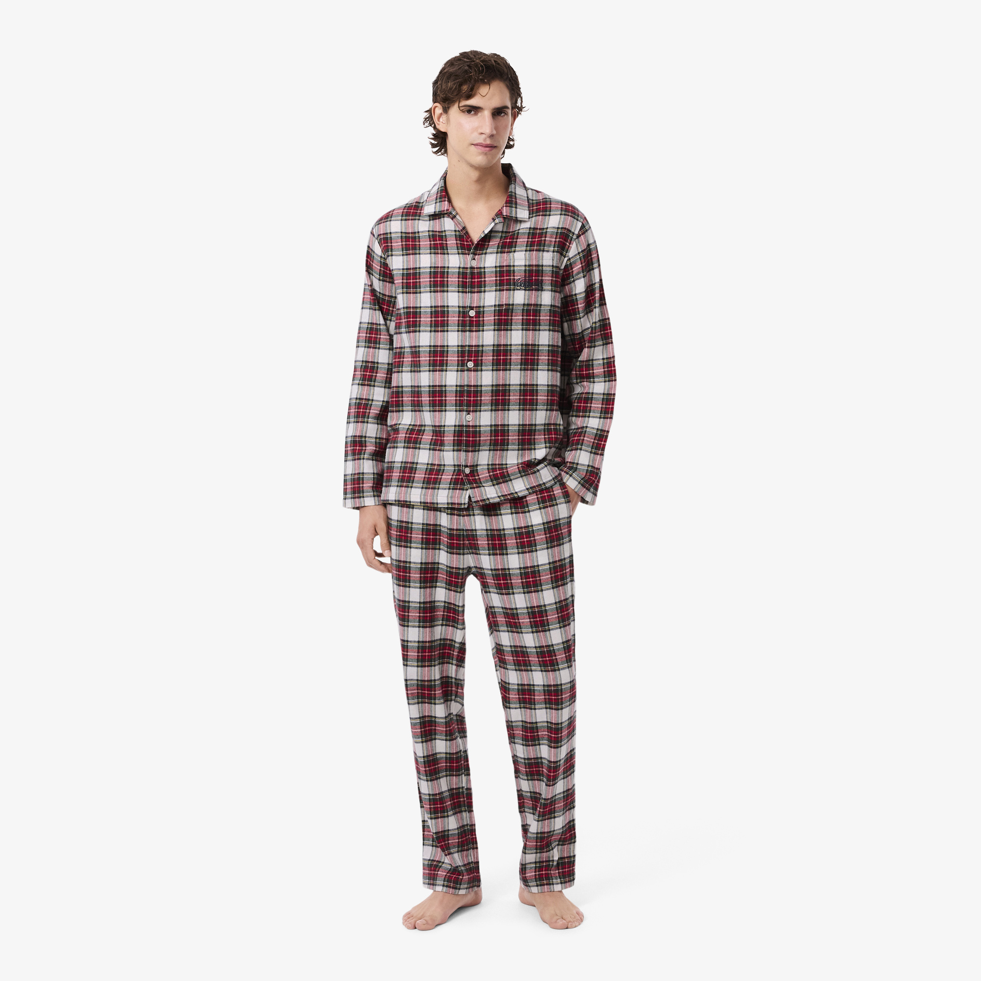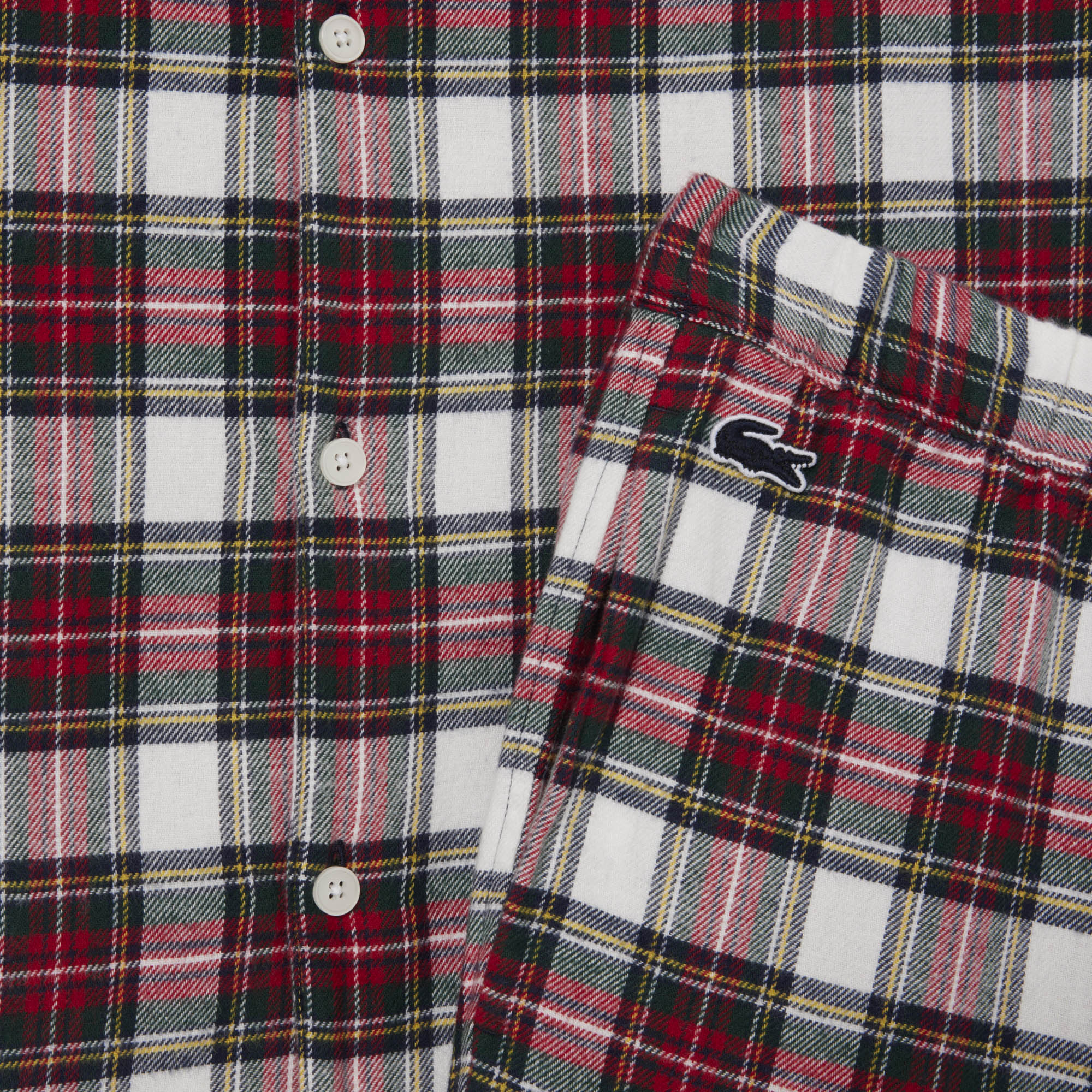 The pants' straight legs and elastic waistband offer extra freedom of movement, while the Lacoste-engraved buttons and seasonal plaid pattern provide a stylish finish. A timeless pair of pajamas that will have you relaxed through the night.
