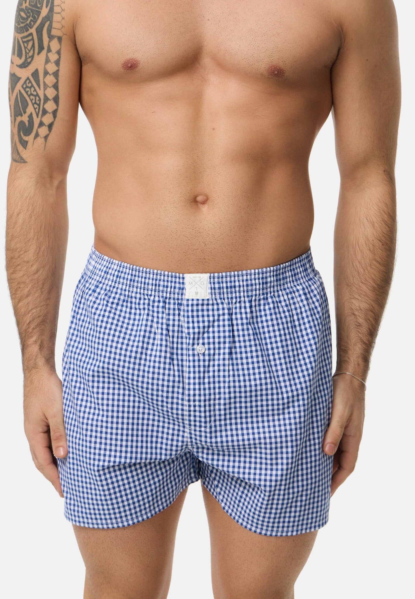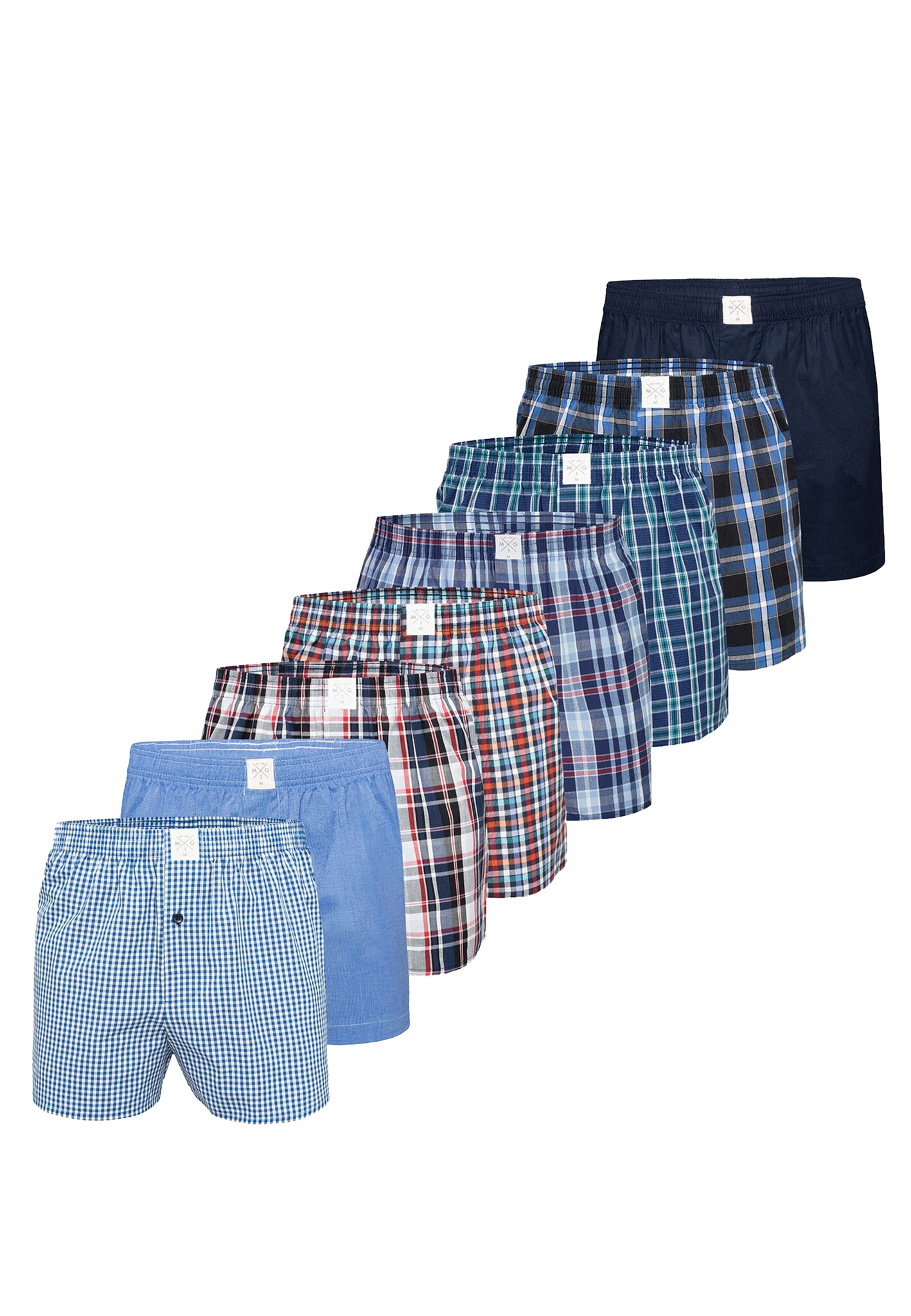 MG-1's wide-leg boxer shorts combine breezy comfort with a classic fit. Made of 100% woven cotton and supplied in an economical multipack of 8 pieces, they are ideal for men who love space and freedom of movement. The soft, elastic waistband ensures a comfortable fit without pinching.