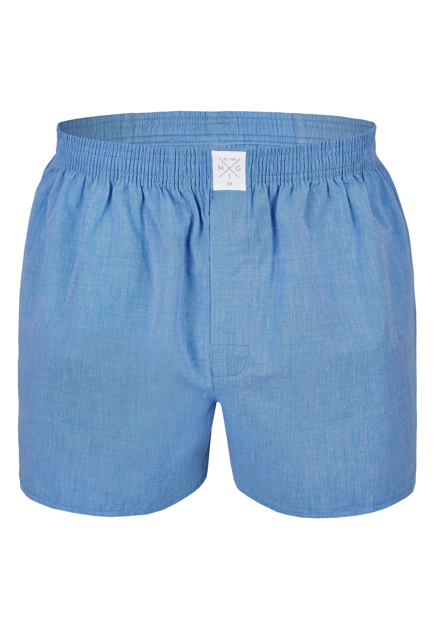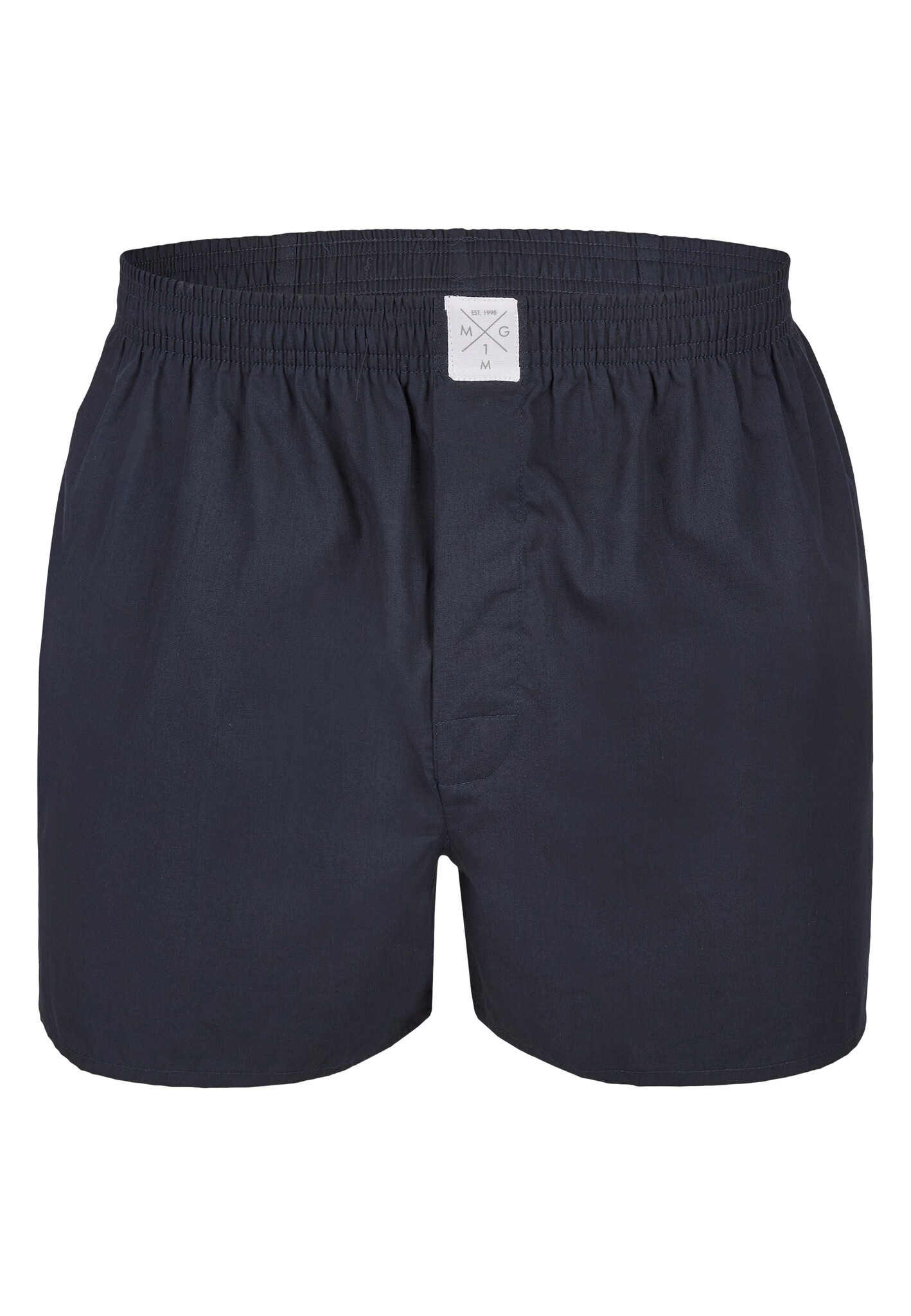 The unis of MG-1 boxer shorts are made of 100% woven cotton. The shorts are loose and wide. The highly elastic but soft waistband provides little pressure and is comfortable to wear. The set contains four wide boxer shorts in the colors black, navy, gray and light blue.
