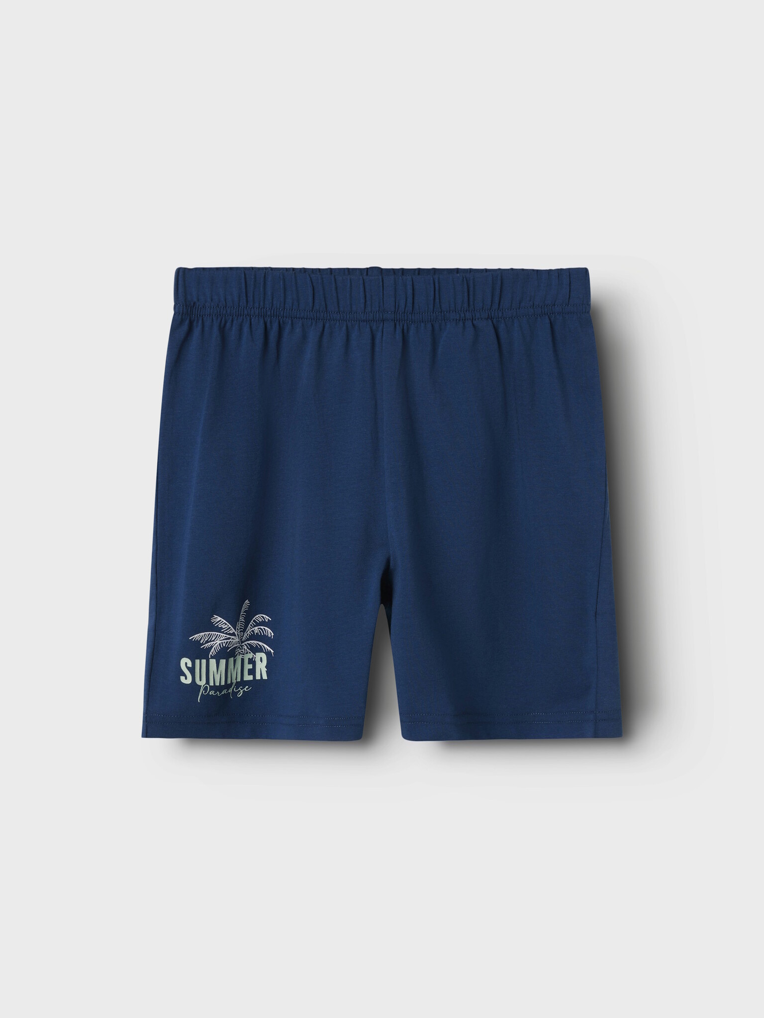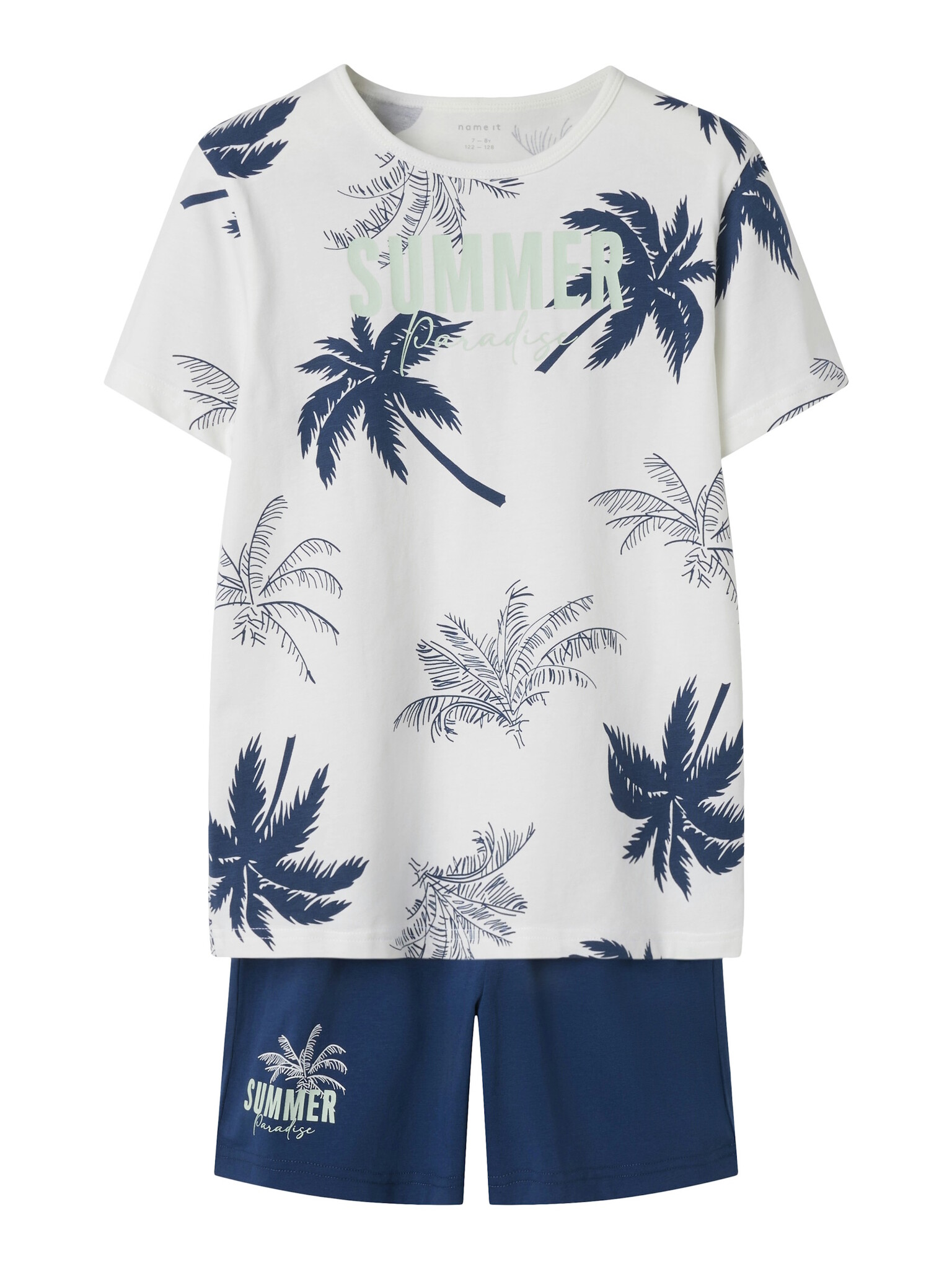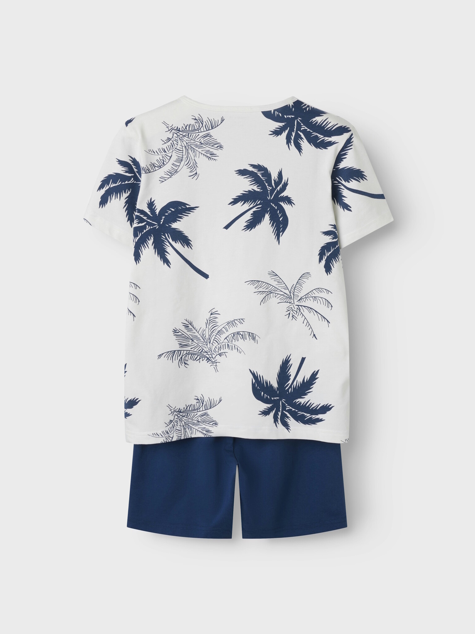 The NKMNIGHTSET short pajama set from Name It is made for relaxed nights and early mornings. With a cheerful palm tree print and soft materials, this two-piece pajama set is perfect for warm nights. The lightweight, stretchy jersey fabric feels comfortable on the skin and offers plenty of freedom of movement while sleeping or lounging.