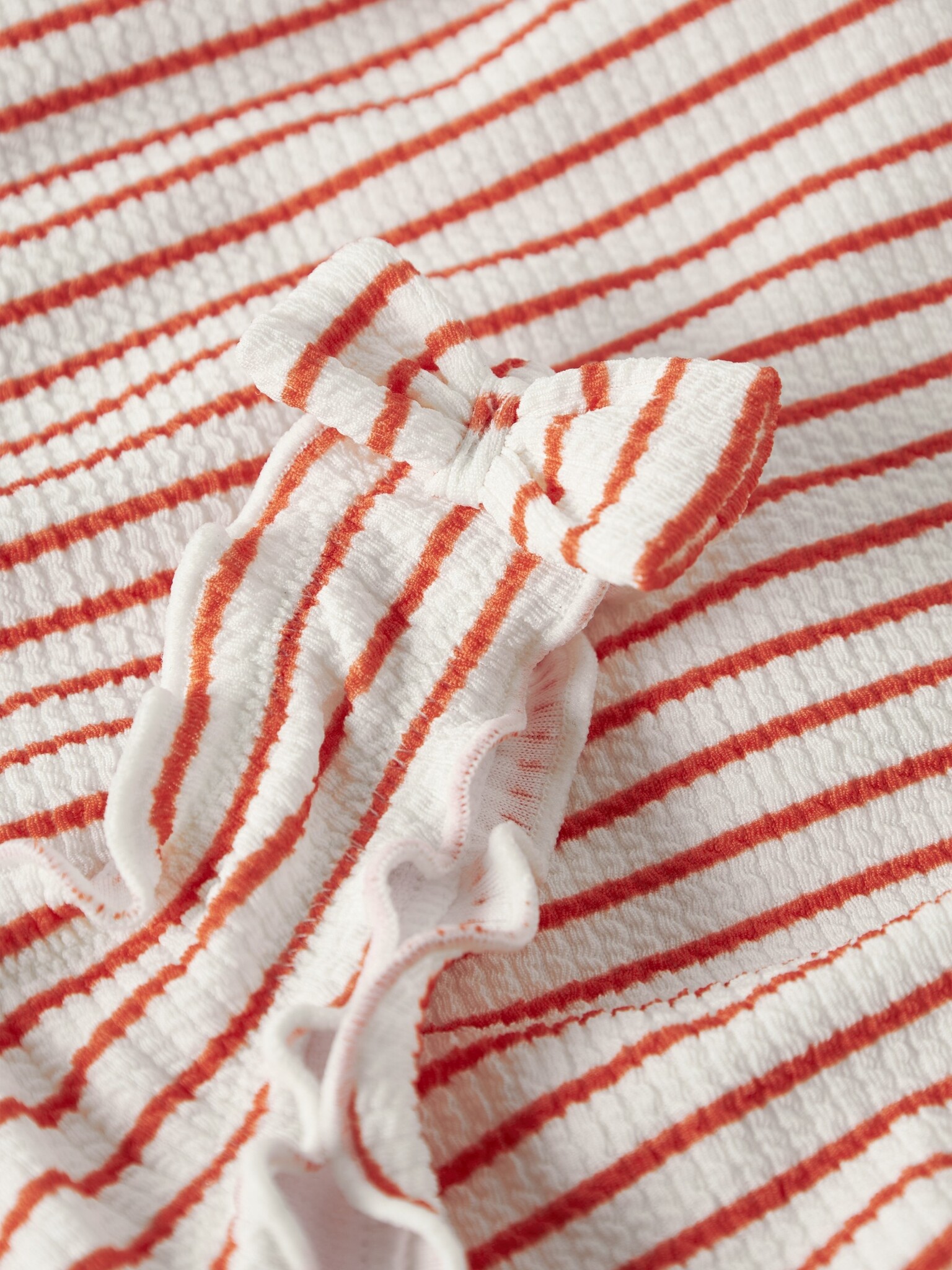 - Special features: Made in red with a striped design, ribbed texture and a bow for a playful look.