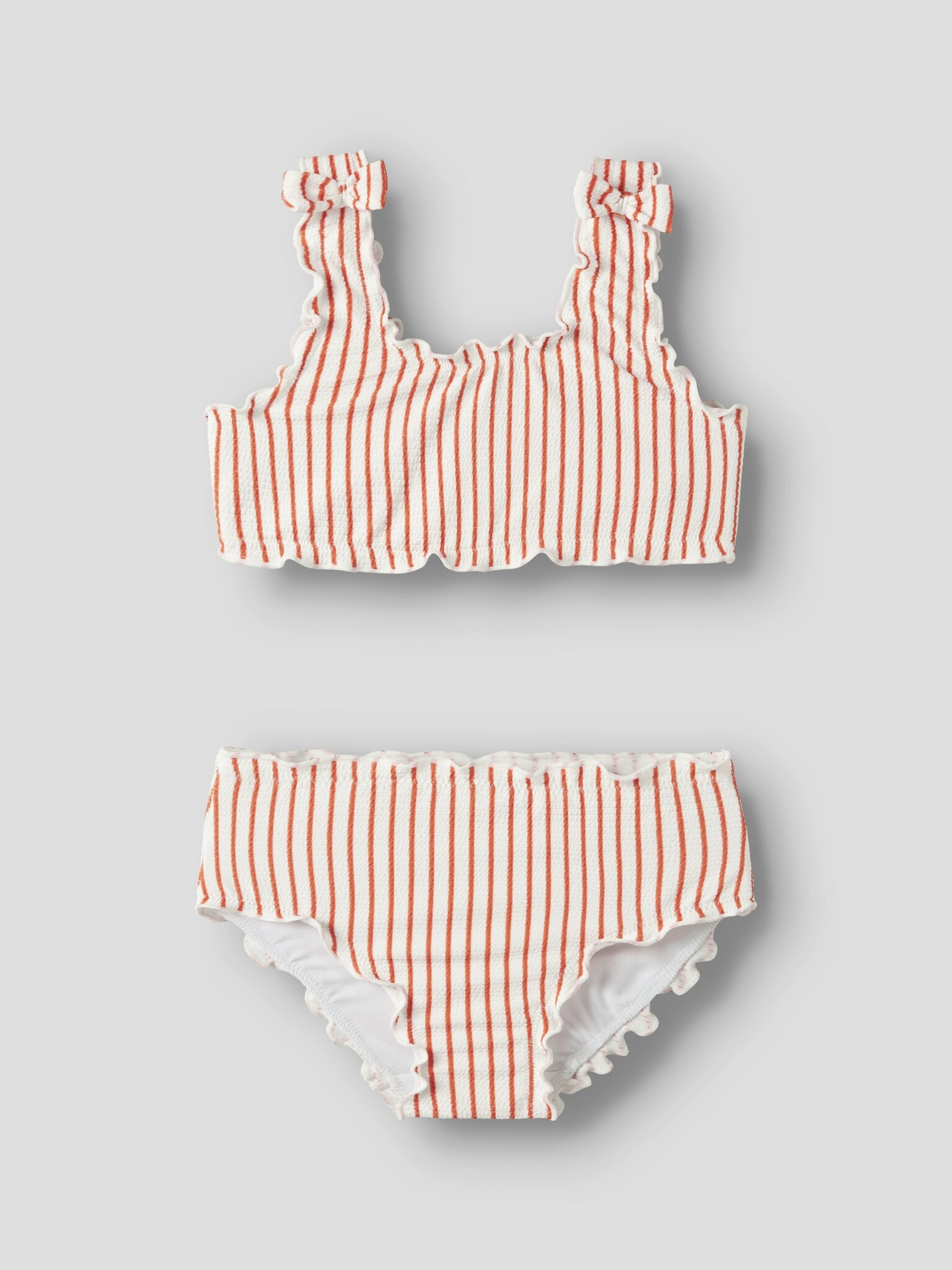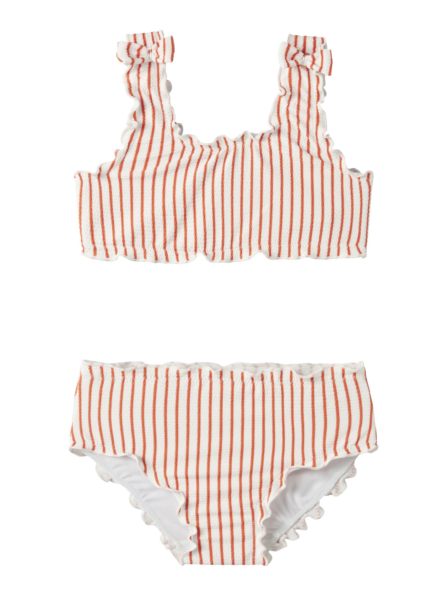The red bikini set from Name It is a cheerful choice for girls who love a playful and summery look. This ribbed girls bikini, the NMFZIKKA, stands out with its striped design and bow, which makes for a fresh and sweet look at the beach or poolside. Thanks to the combination of polyester and elastane, the fabric feels comfortable and this bikini set offers comfort while swimming and playing.