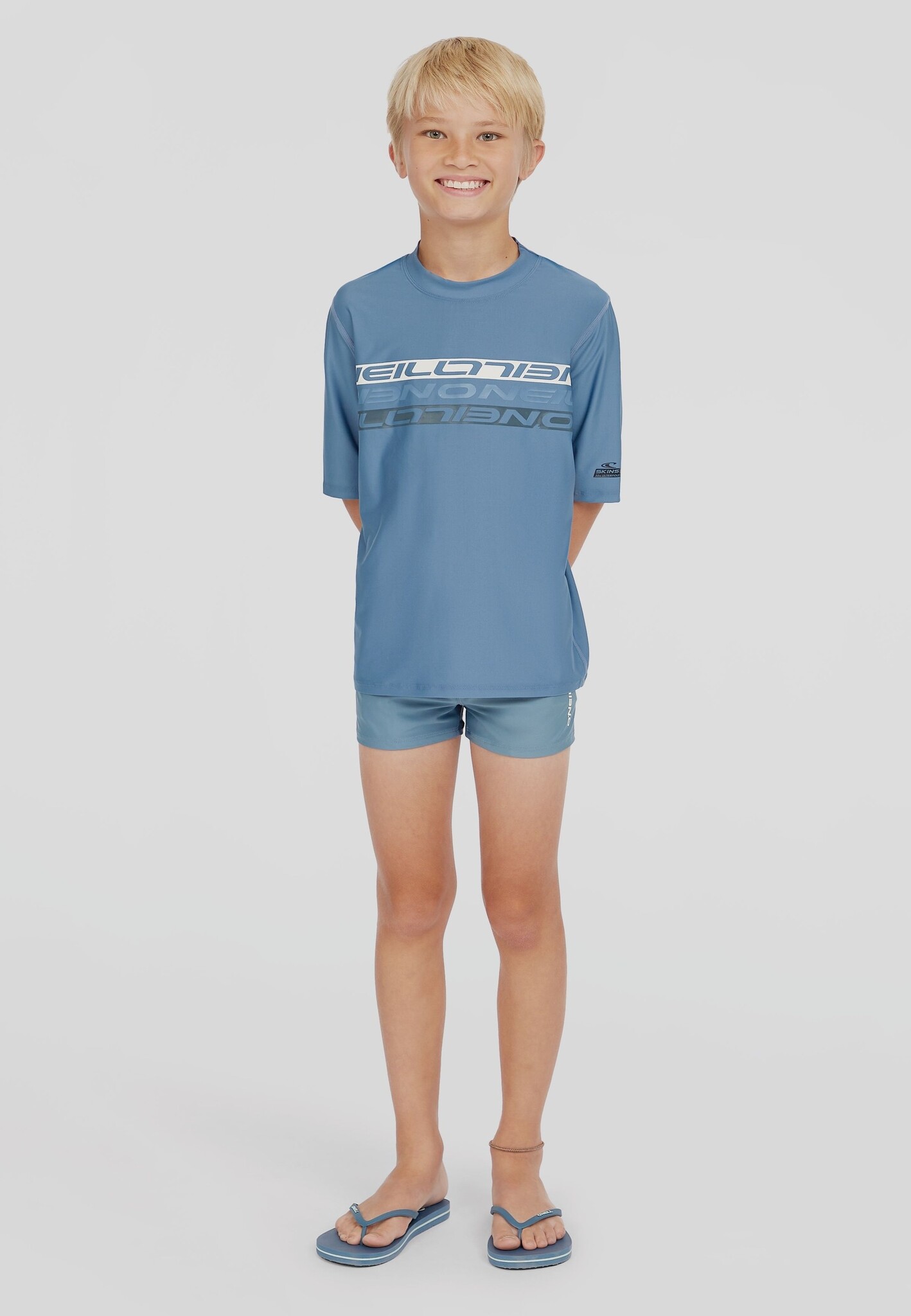 The O'Neill Boys Swim Boxer Racer in solid blue offers a fresh, sporty look with a tight-fitting fit. The lightweight and stretchy fabric ensures optimal freedom of movement, making this swim boxer ideal for swimming lessons, workouts or active moments in the water. The timeless design makes this model a reliable choice for young sports enthusiasts.