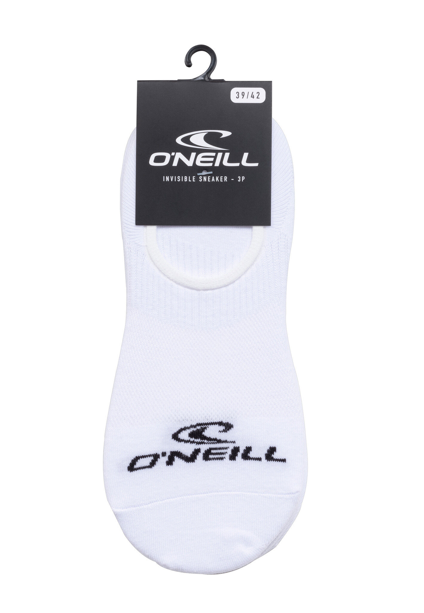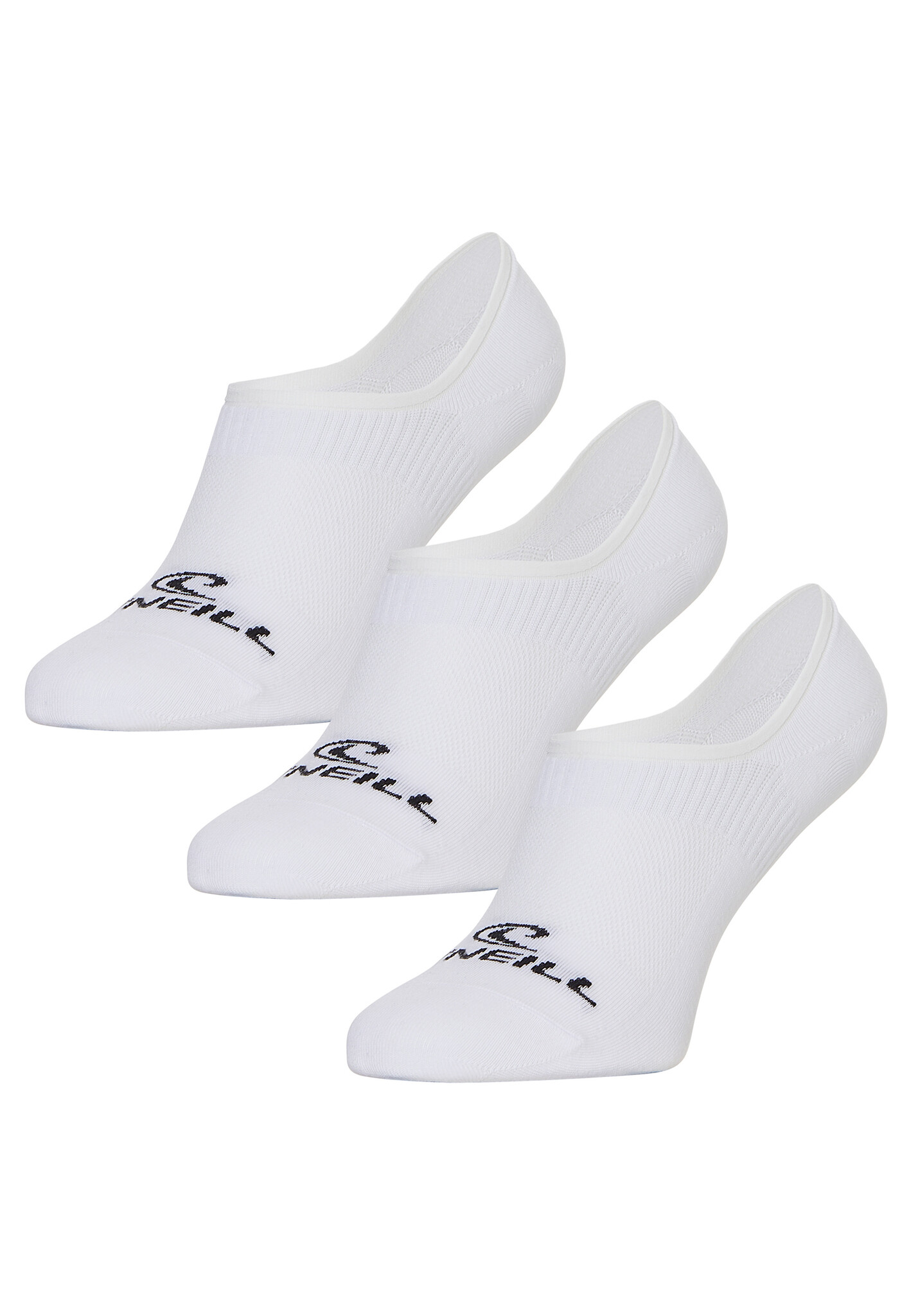 O'Neill no show footies 710003 for men and women. The set of basic sneaker socks includes 3 plain white footies that are invisible in your sneaker shoes. In addition, the footies feature the O'Neill logo. The Jersey knit fabric is lightweight and stretchy for extra comfort. Made of 75% cotton, 23% polyamide and 2% elastane.