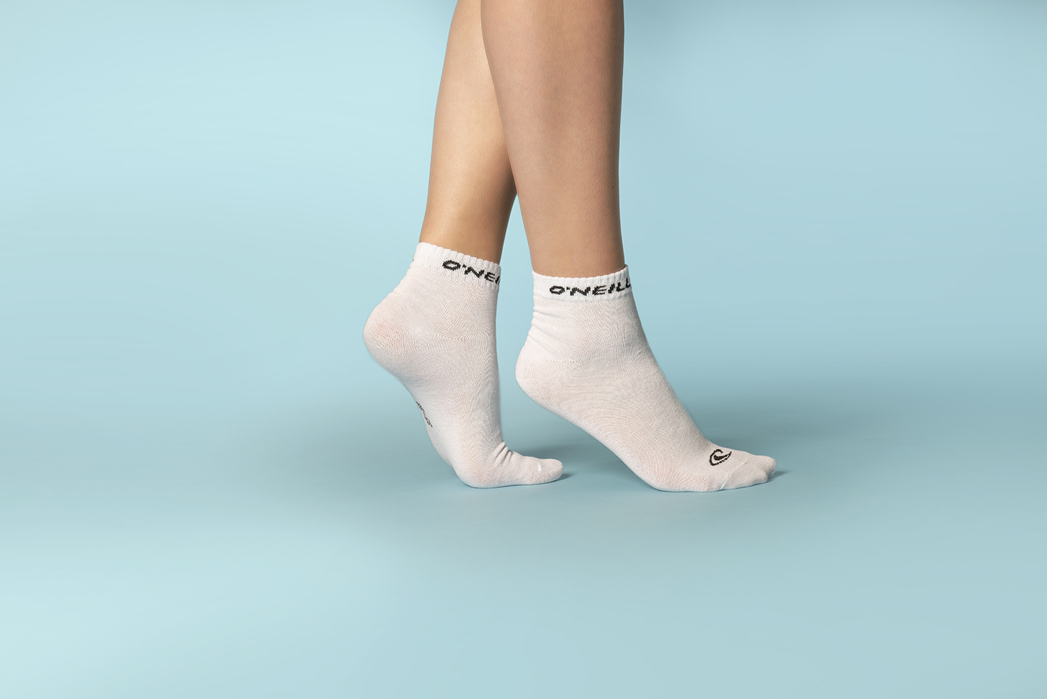 O'Neill sneaker socks for men and women. The set of sneaker socks includes 3 plain white ankle socks and feature ribbing for a snug fit. This makes them perfect for wearing in your everyday shoes. In addition, the sneaker socks feature the O'Neill logo and with size markings at the bottom. Made of 72% cotton, 26% polyester and 2% elastane.