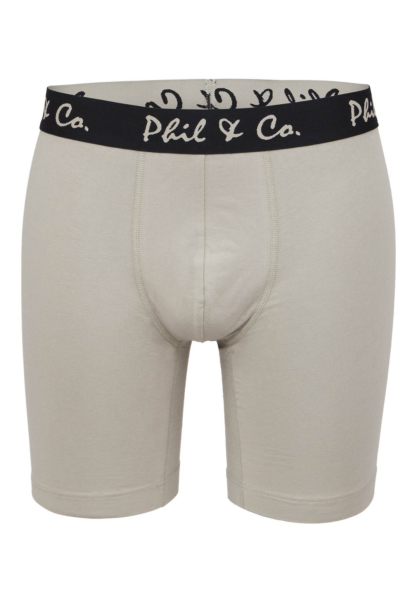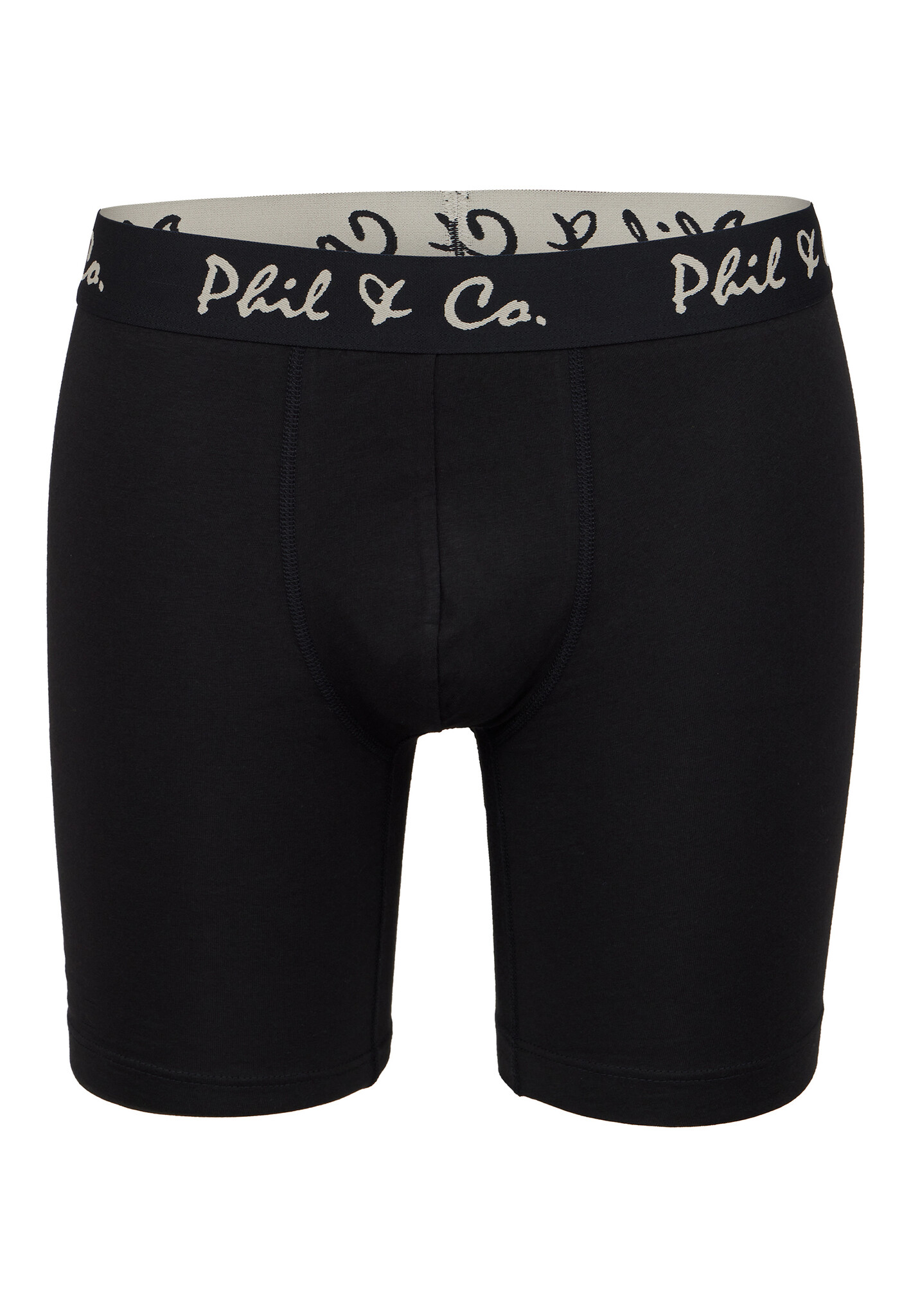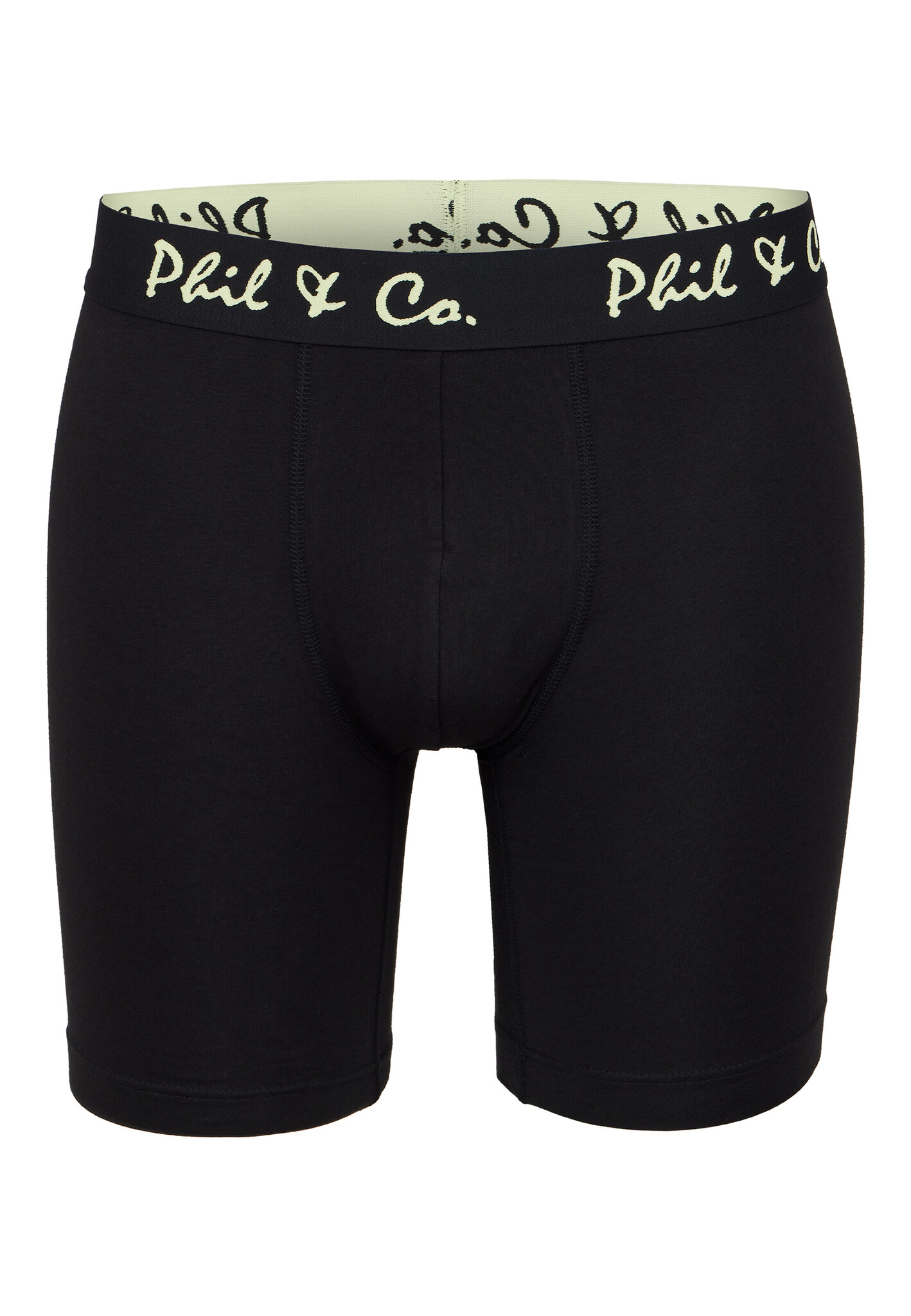 Phil & Co men's long leg boxer briefs. This set contains 4 plain boxer briefs in yellow, beige and black with elastic waistband in color accent. The extra long legs fit well on the legs and give extra comfort.