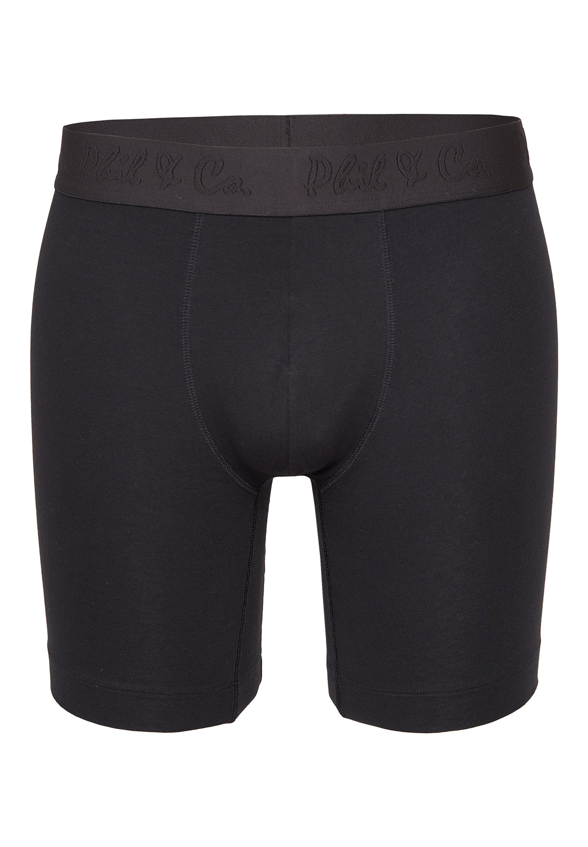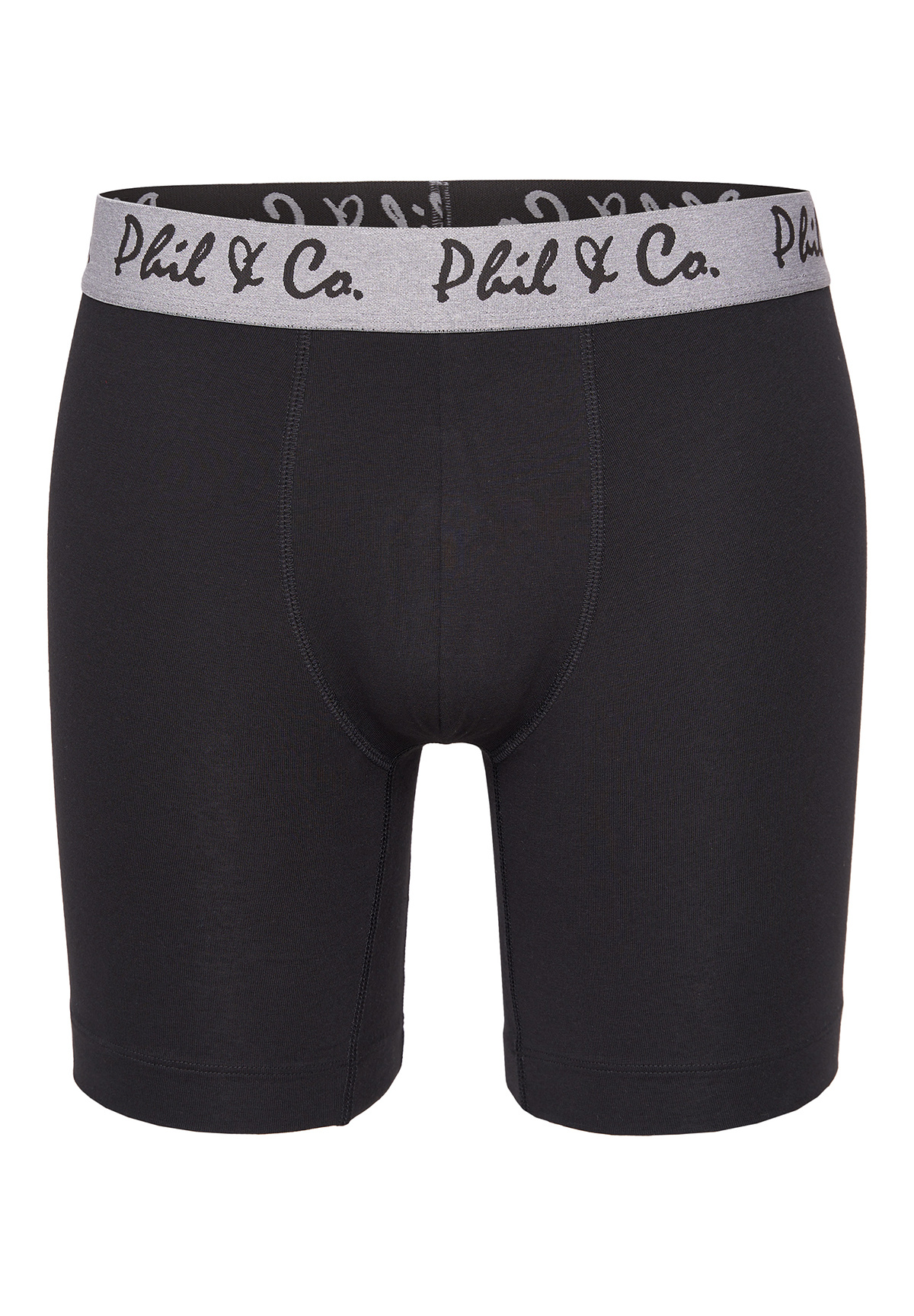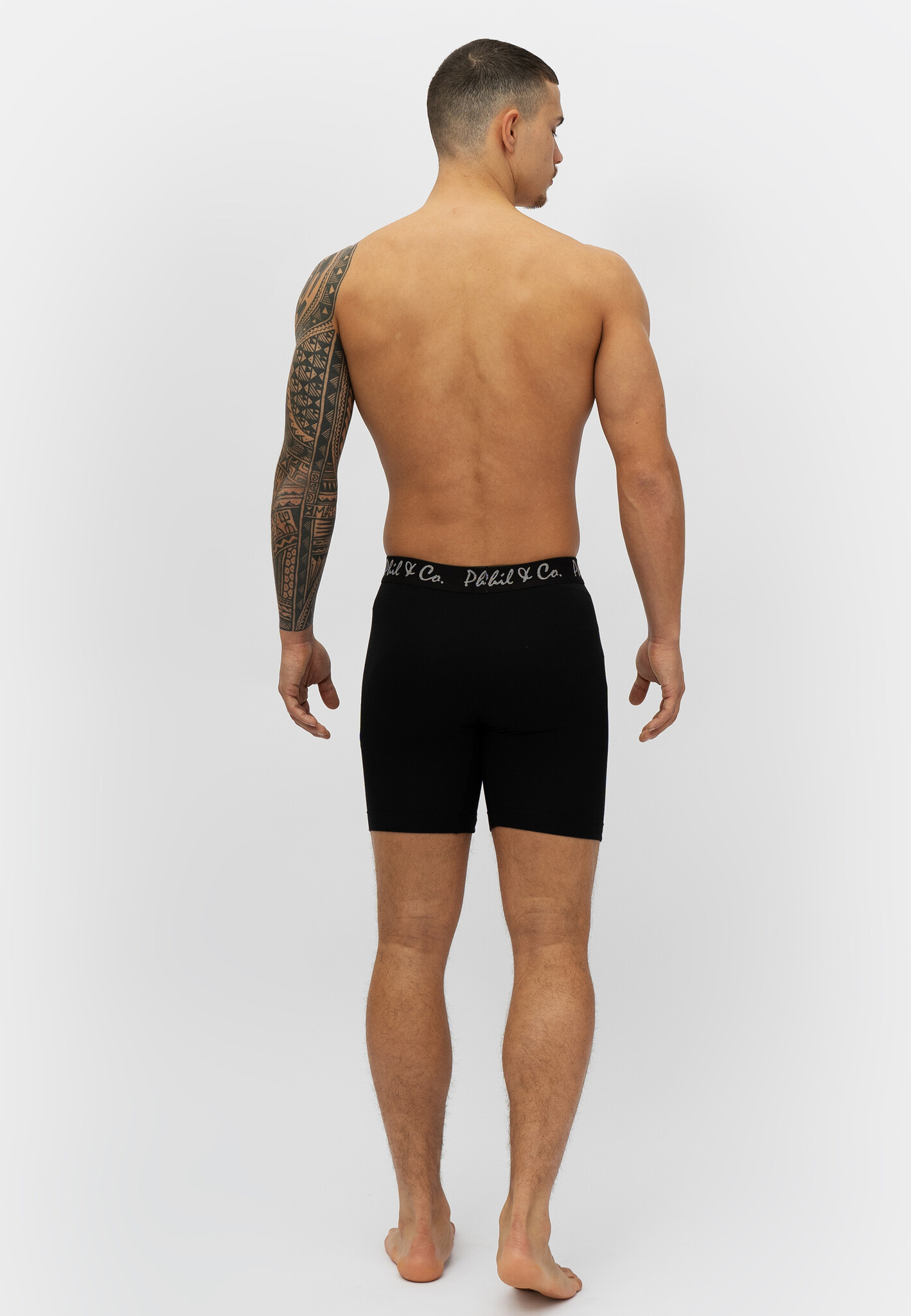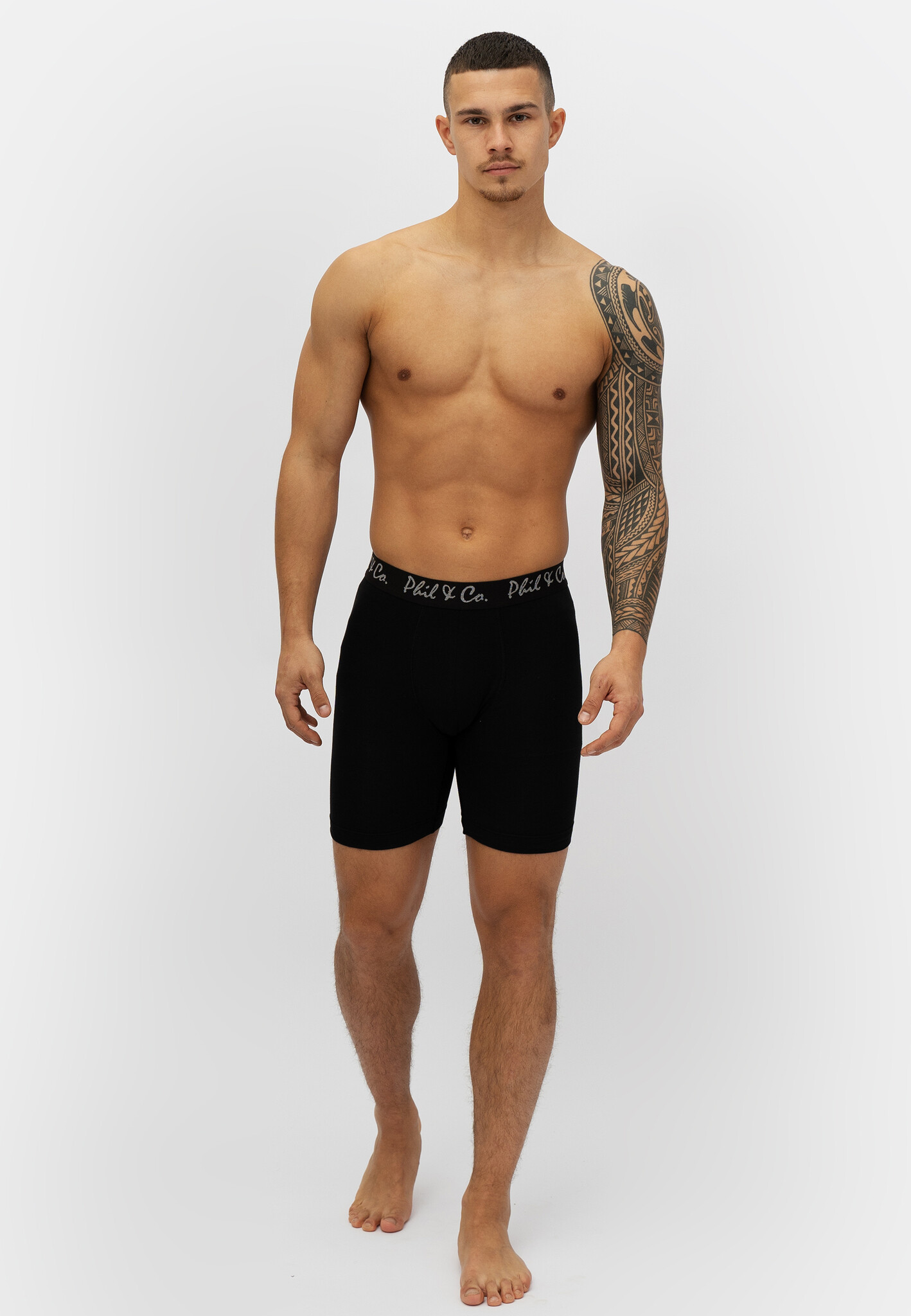 Phil & Co black men's long leg boxer briefs. This set includes 3 plain boxer briefs with elastic waistband. The extra long legs fit well on the legs and give extra comfort.