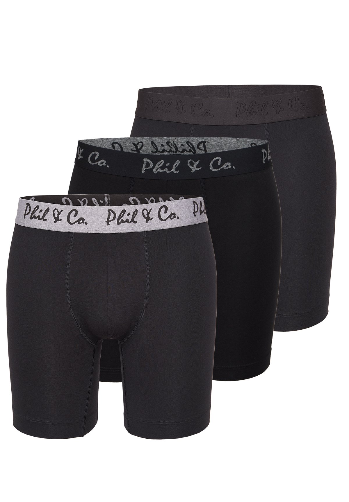 Phil & Co Boxer Shorts Men's Long-Pipe Boxer Briefs 3-Pack Black