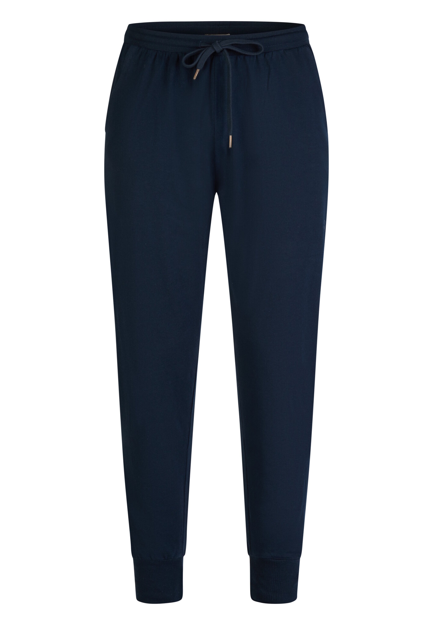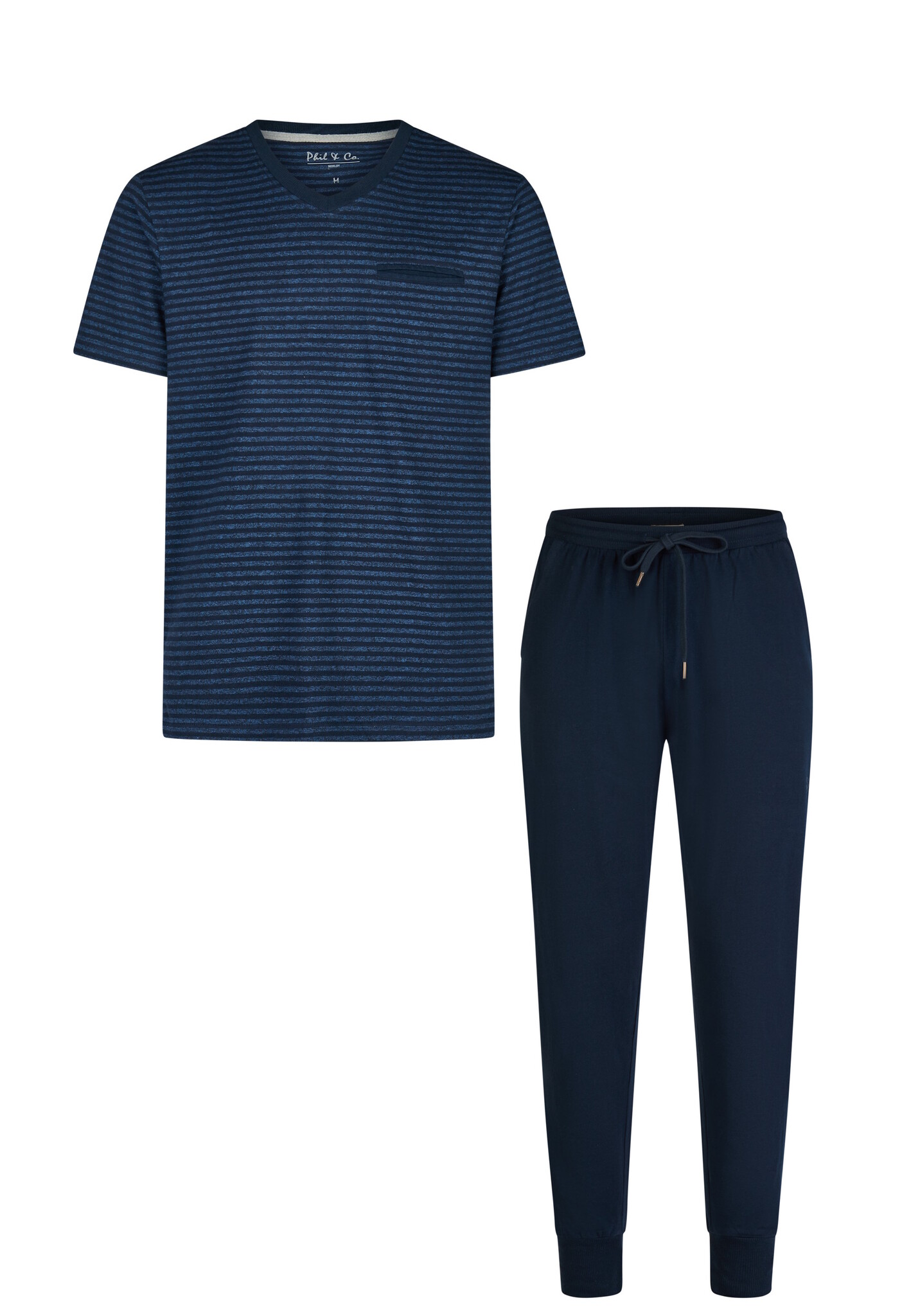 The Phil & Co Essential men's short sleeve blue/striped pajama set is a comfortable set with a sporty, timeless look. The dark blue striped short-sleeve t shirt has a comfortable feel, and the dark blue long pants complete the set for relaxed evenings and fine nights. This pajama set fits smoothly so you move easily, whether you're going to sleep or still sitting quietly at home.