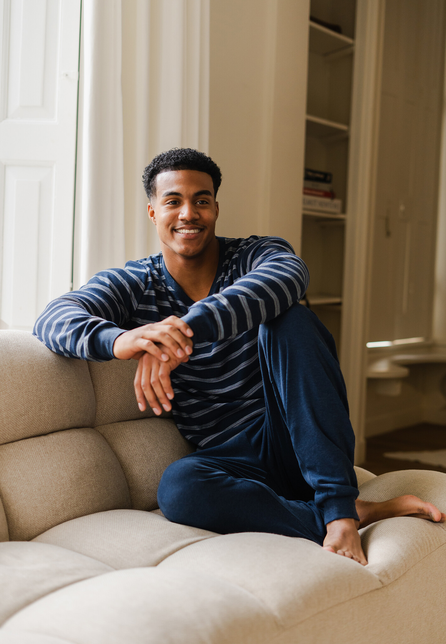 Phil & Co Men's Pyjama Set Interlock Dark Blue Striped
