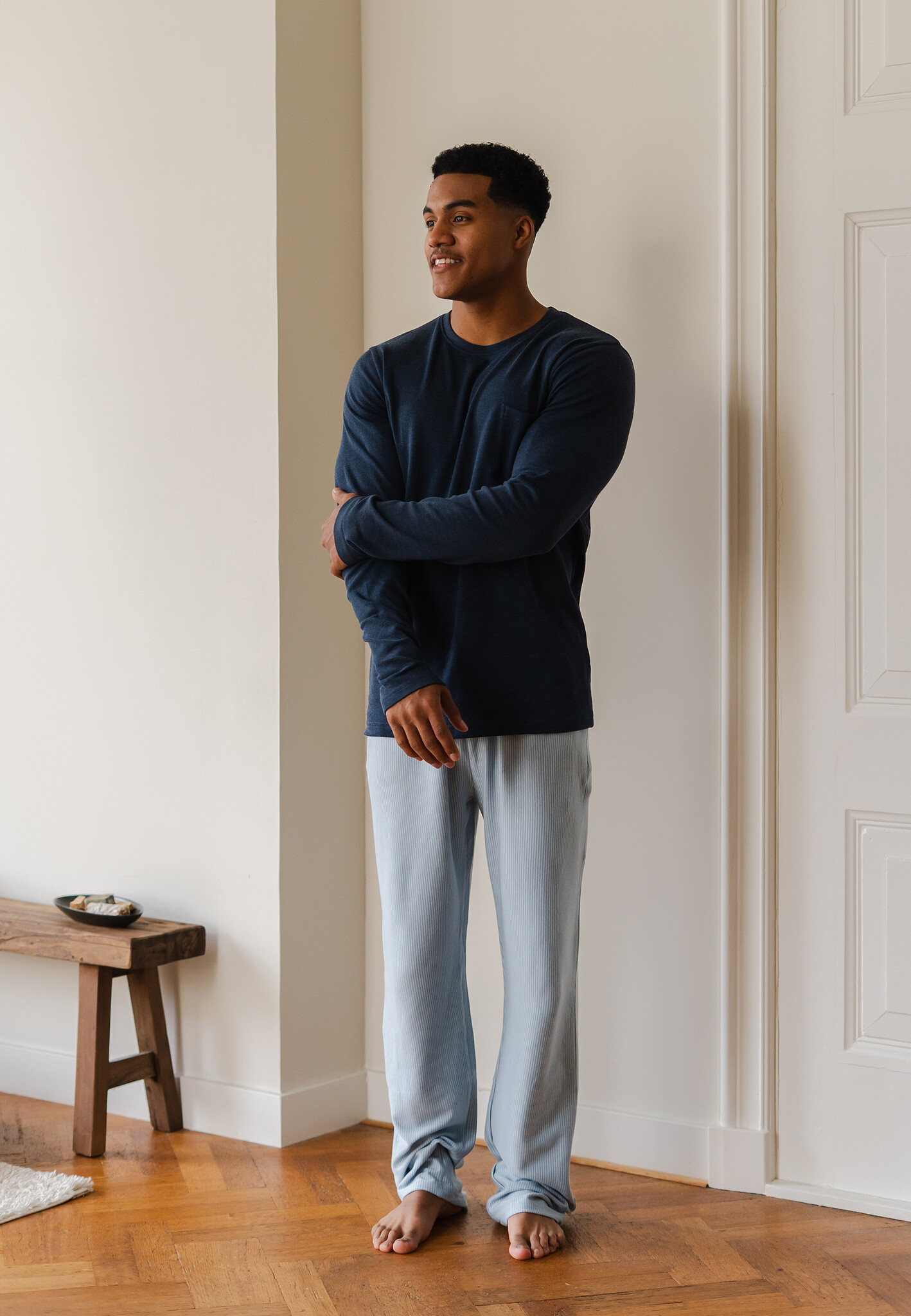 The long winter pajamas from Phil & Co are specially designed for comfort during the colder months. The long-sleeved, round-neck t-shirt has a pleasantly soft feel, while the matching loose-leg pants provide extra freedom of movement and a relaxed fit.