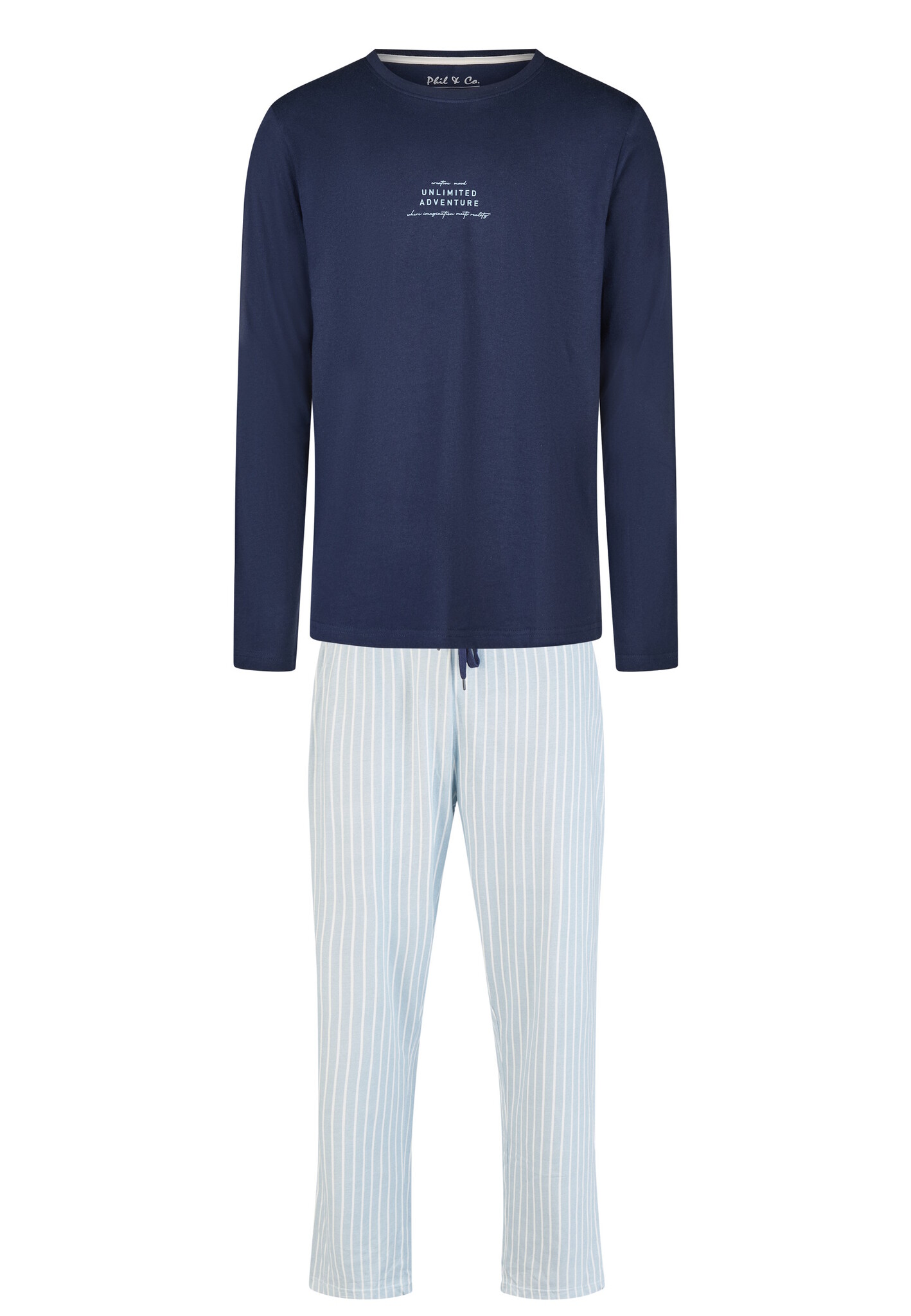 Phil & Co Phil & Co Men's Pyjama Set Long Dark Blue/Light Blue Striped