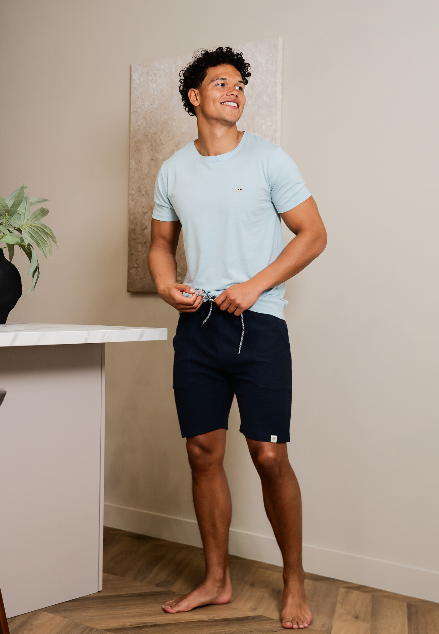 The men's short pajamas from Phil & Co are the ideal choice for those who love comfort with a stylish touch. These short pajamas consist of a soft T-shirt and short pajama pants made of rib fabric - perfect for relaxed nights or lazy mornings.
