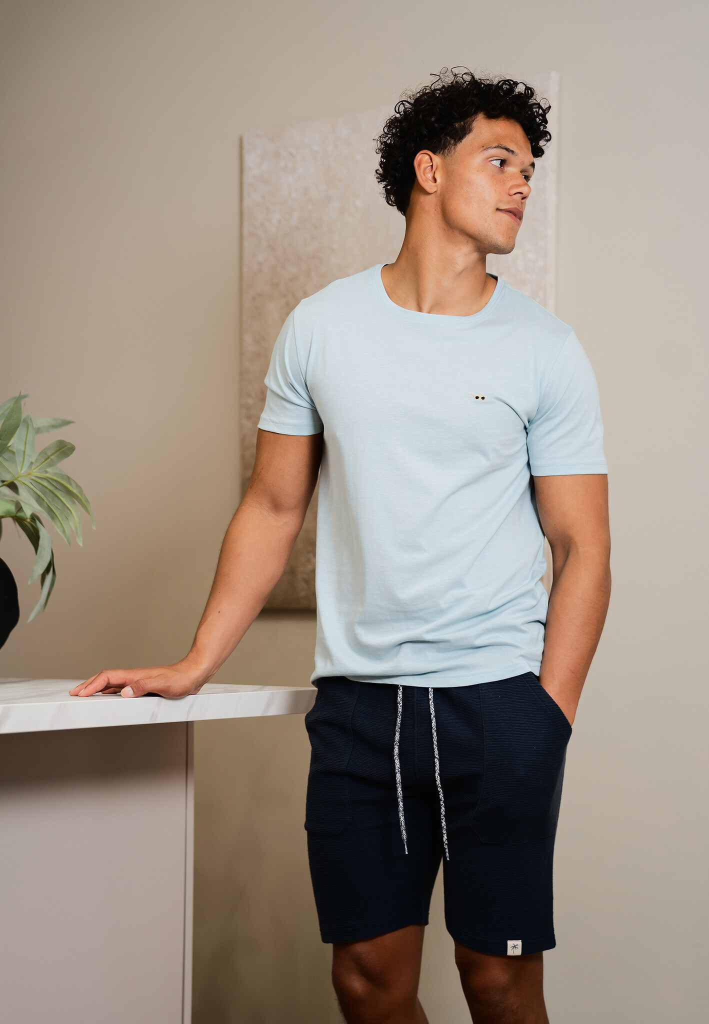 T-shirt: short sleeves and round neckline for a timeless, relaxed look