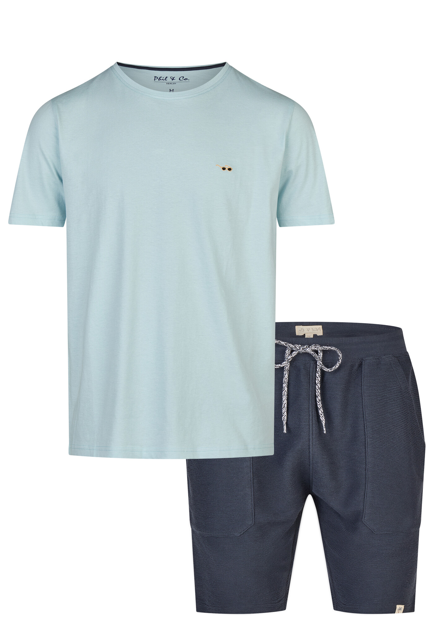 Phil & Co Men's Short Pajamas Lounge Set Shortama Light Blue/Dark Blue