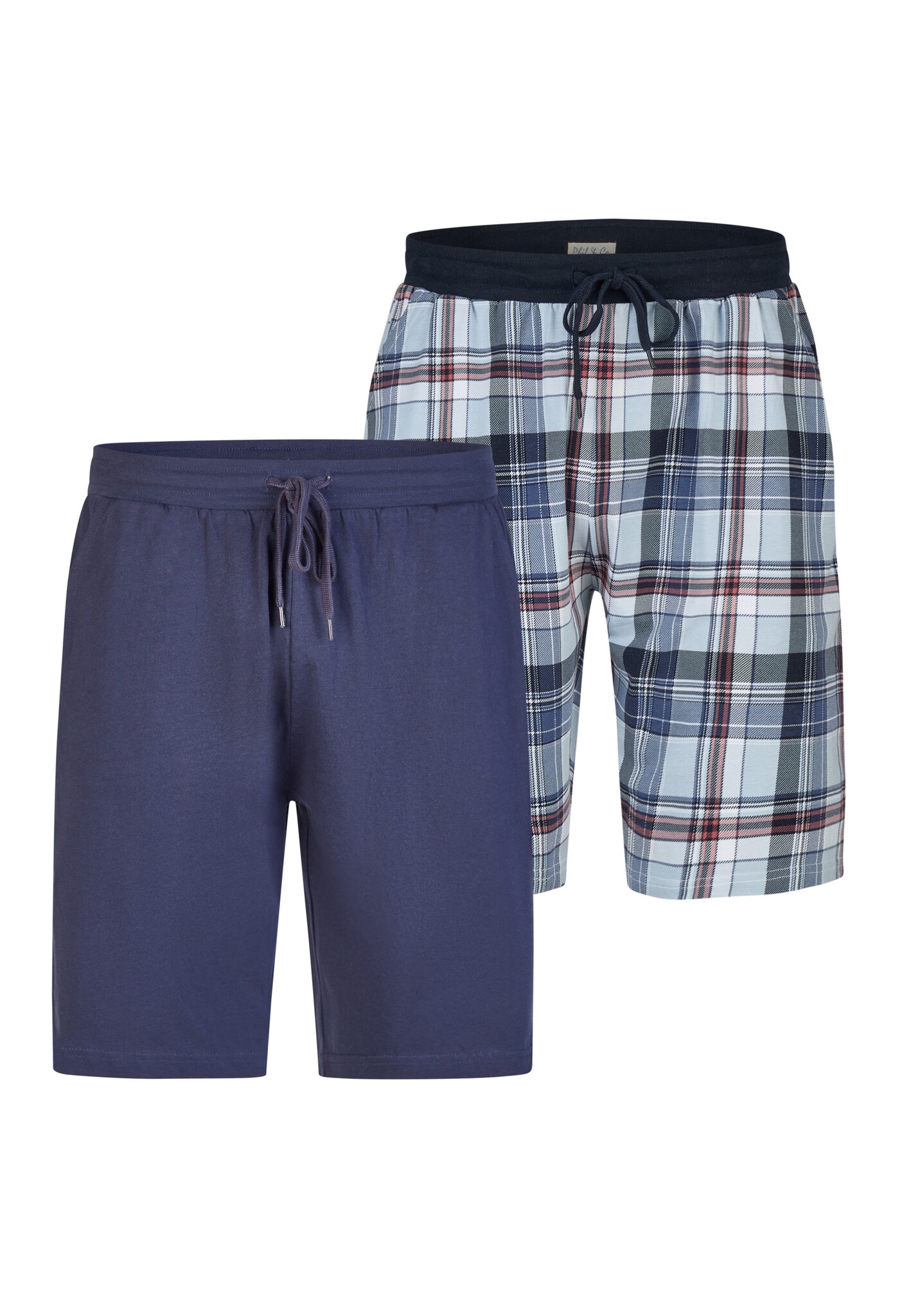 Phil & Co Men's Short Pyjama Pants 2-Pack Blue Checkered/Dark Blue